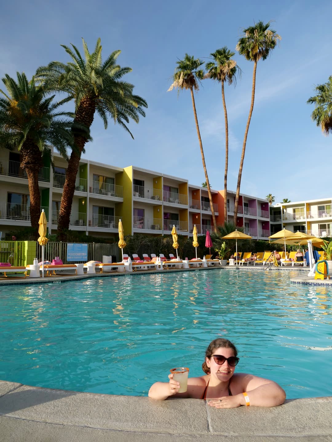 Hébergement : 1 nuit au coloré The Saguaro, motel tendance de Palm Springs, où nous avons fini la journée au bord de sa très agréable piscine avec le cocktail offert au check-in (voir plus de photos et les tarifs actuels).