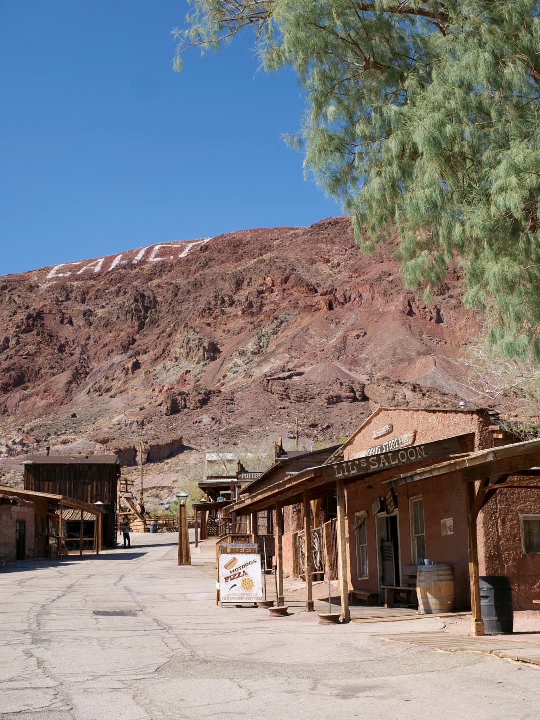 Comme il fait trop chaud pour la Death Valley, nous prenons notre temps sur la route de retour vers Los Angeles, en s’arrêtant à plusieurs arrêts insolites, dont les Seven Magic Mountains, Alien Fresh Jerky et le Mad Greek Cafe. On se décide finalement à visiter la ville fantôme de Calico, totalement vide à cause des températures !