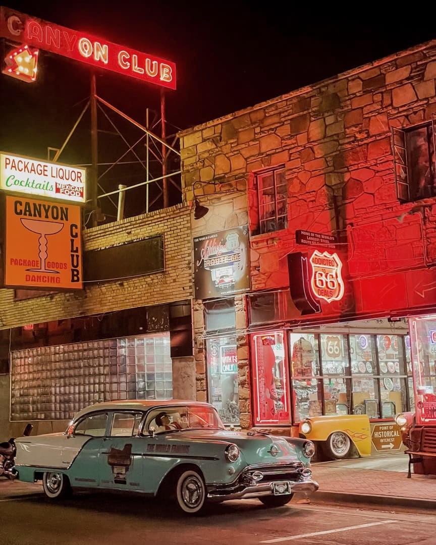 Nous avons ensuite pris la Route 66 au niveau d’Amboy et l’avons suivie jusqu’à Williams, où nous passions la nuit. En chemin, nous nous sommes notamment arrêtés à Oatman, Kingman (pour un milkshake chez Mr D’z), Hackberry General Store et Seligman.