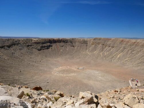 Une de notre plus grosse journée de route ! Après un départ de bonne heure de Williams, nous avons continué notre périple sur la Route 66. Nous avons mangé un excellent petit-déjeuner tex-mex chez MartAnnes Burrito à Flagstaff, puis nous avons pris la direction de Winslow, avec un petit détour au Meteor Crater (accès payant).