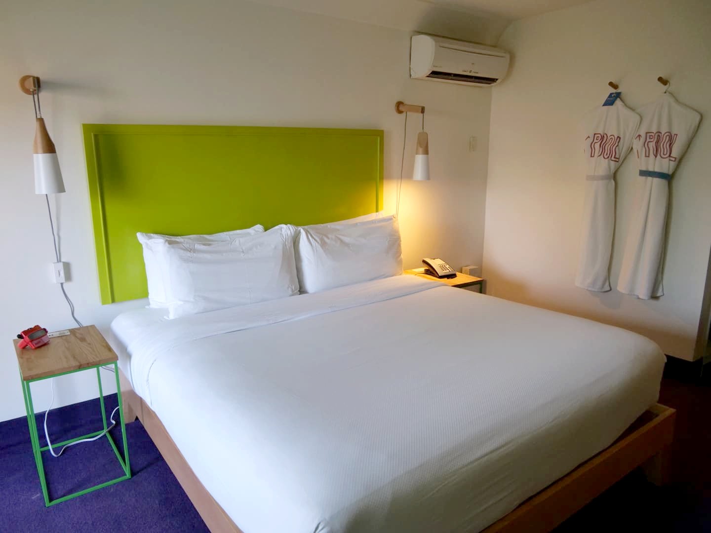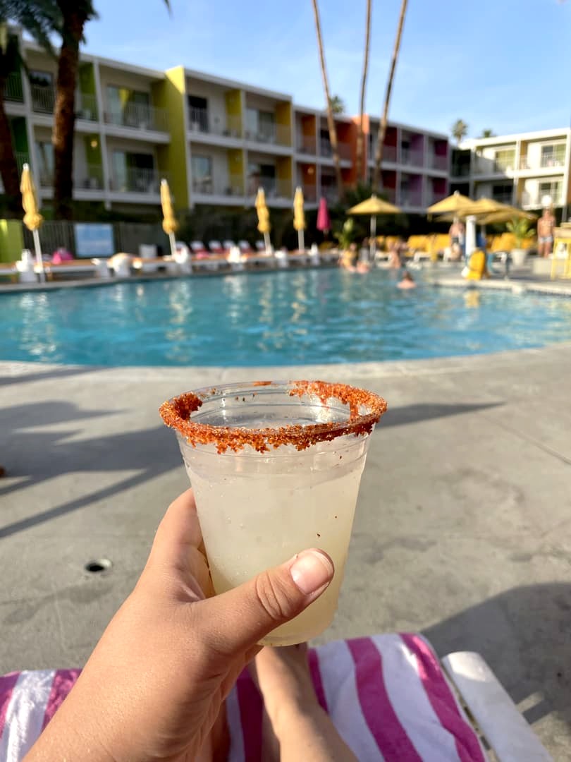 Alors oui, ça reste assez cher pour un « motel », mais le concept est vraiment sympa, les couleurs mettent de bonne humeur et il y a plein de petits détails vraiment bien pensés ! Bref, si vous évitez de réserver en last minute (quand les prix montent), pour moi ça valait quand même son prix. On a même eu droit comme verre d’accueil à une excellente margarita que je me suis empressée d’aller siroter dans l’eau !