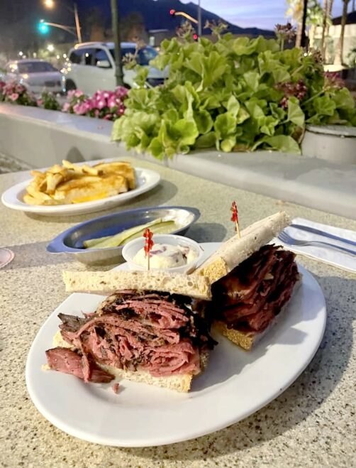 A côté des restos « m’as-tu vu » des hôtels les plus chics de Palm Springs, la ville a conservé quelques institutions de longue date. C’est le cas du Sherman’s Deli, ouvert depuis plus de 60 ans, fréquenté en son temps par Frank Sinatra, Rita Hayworth ou encore Bob Hope. C’est l’endroit parfait pour déguster un vrai et copieux sandwich de déli. Une des spécialités de la maison : le classique pastrami, excellent.