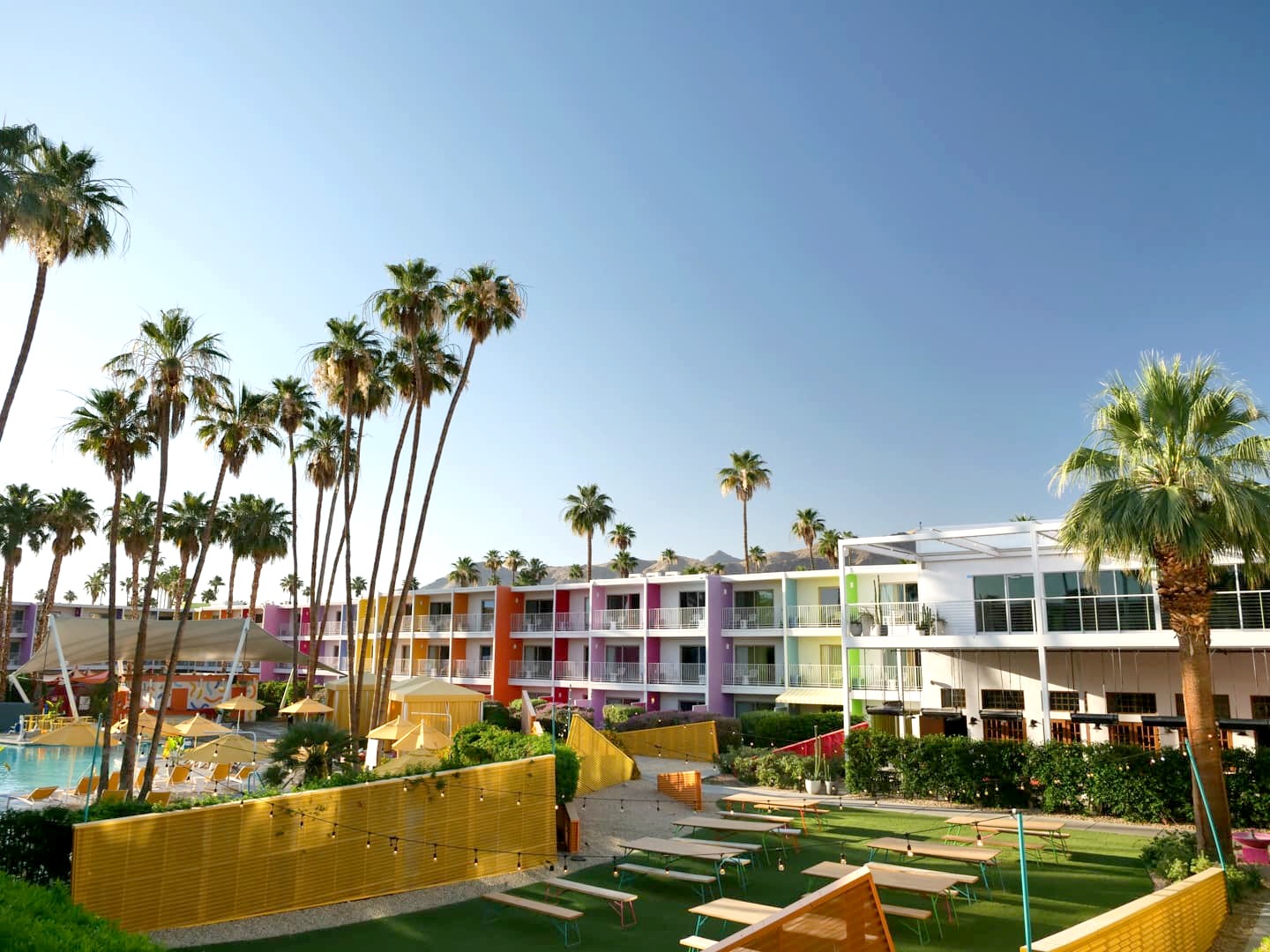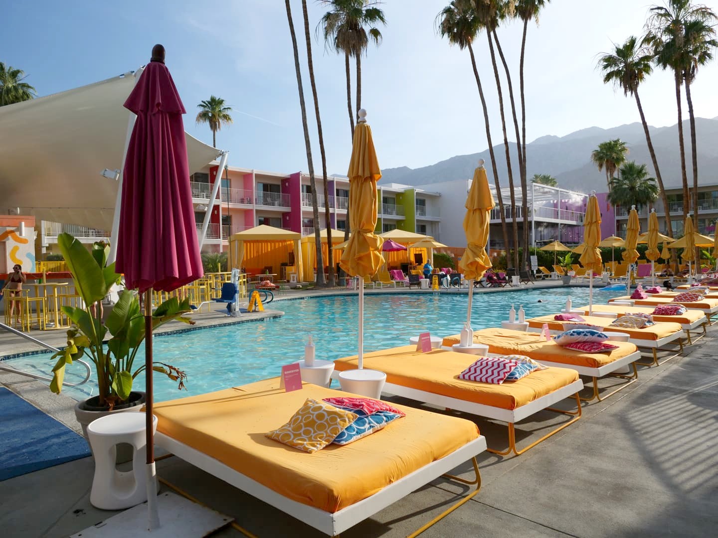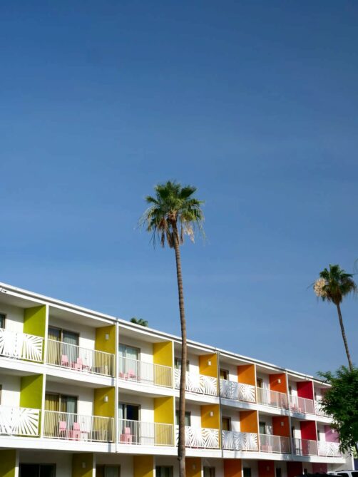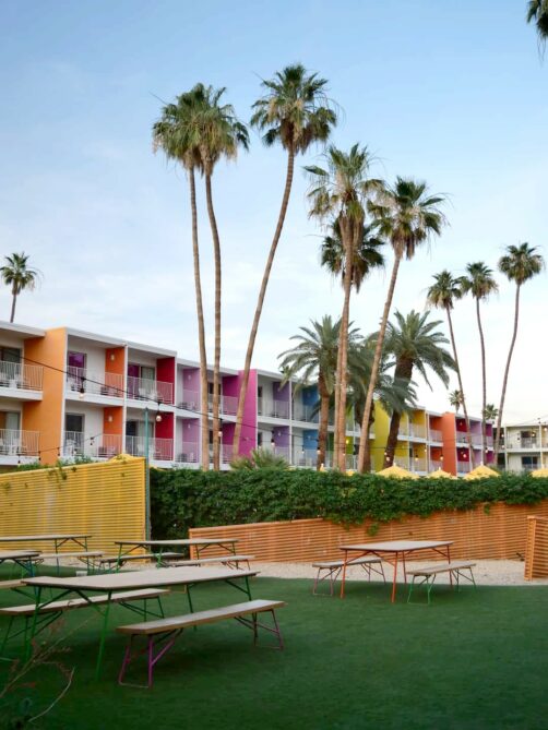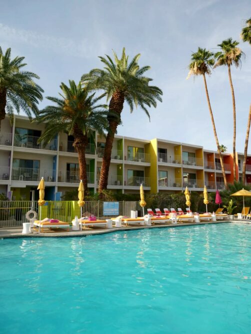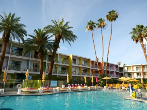 Palm Springs est connu pour ses hôtels et motels avec leurs piscines entourées par les palmiers, dont certains sont également de style Mid-Century Modern. Ce genre d’adresses permet de s’immerger pleinement dans l’atmosphère unique de la ville !