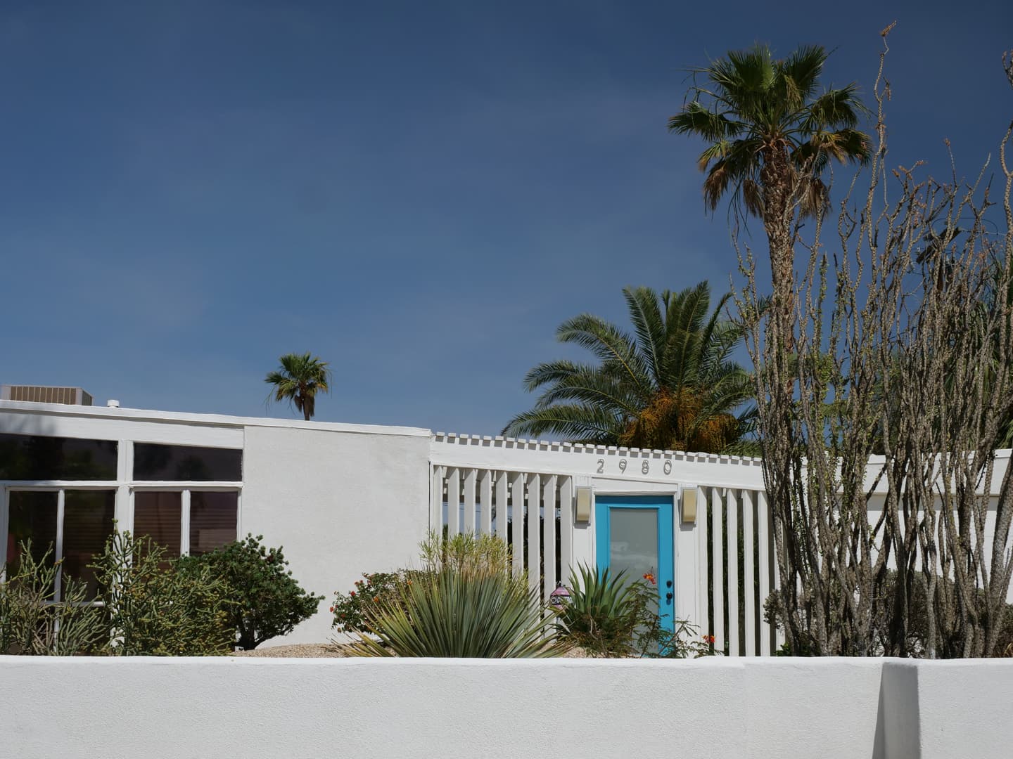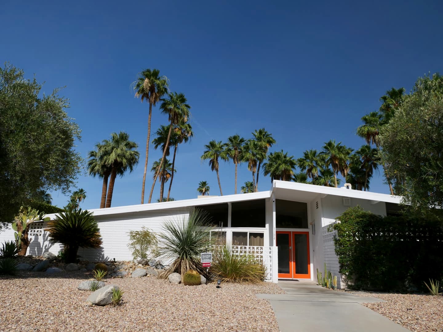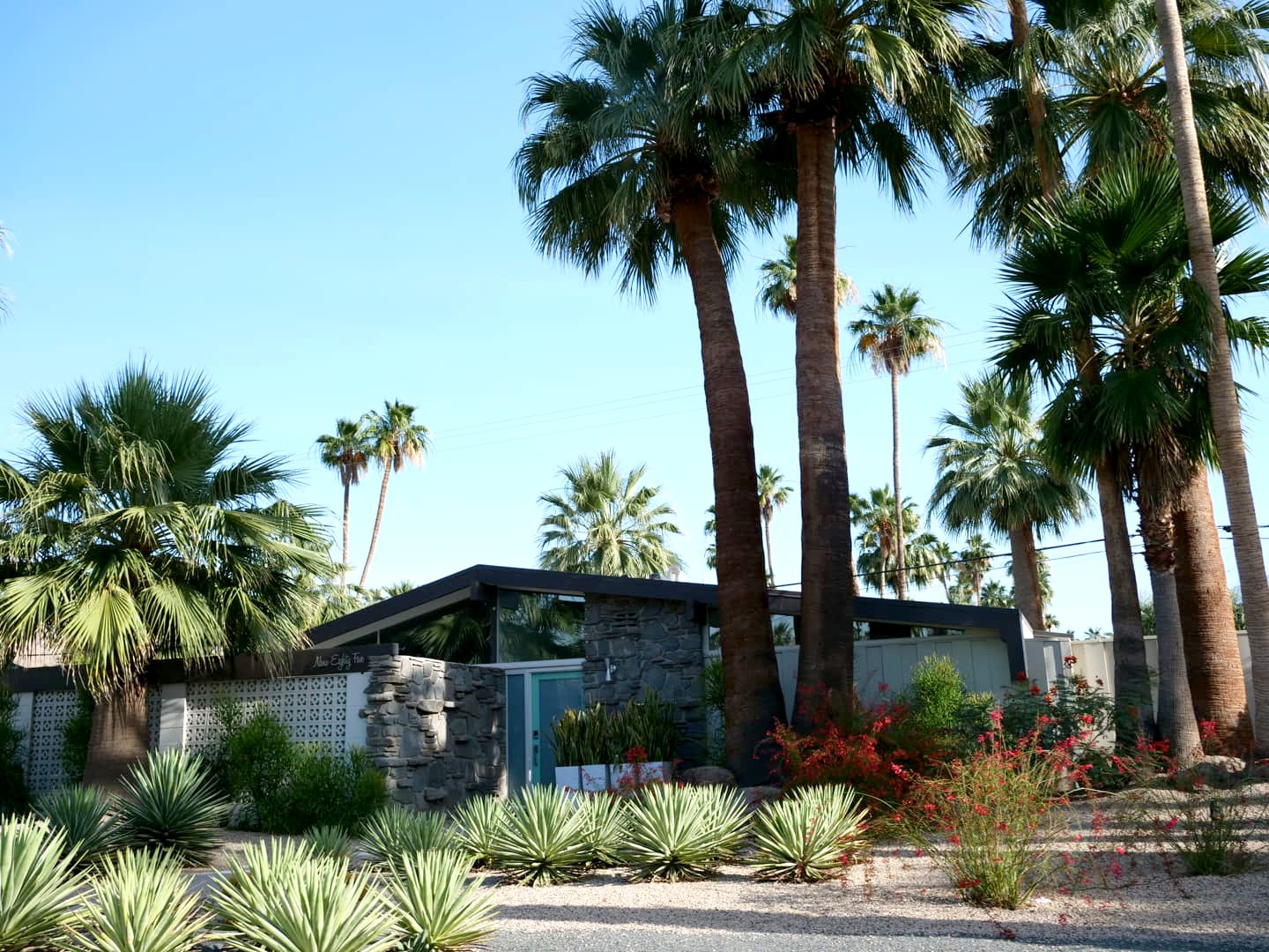 Ce style, comme son nom l’indique, a connu un gros boom aux alentours des années 1950 (même si on voit de nos jours un grand retour de ce style architectural, redevenu bien à la mode). C’est à cette époque que des architectes de renom (Richard Neutra, Albert Frey, E. Stewart Williams, Bill Cody,…) ont transformé la ville en ce paradis moderniste qui semble ne pas avoir trop bougé depuis. Leur style se caractérise par son côté à la fois fonctionnel et innovant. On reconnait ces maisons par leurs lignes nettes, leurs formes géométriques et leur grande utilisation du verre. Vous ne pourrez pas les manquer car elles sont encore partout !