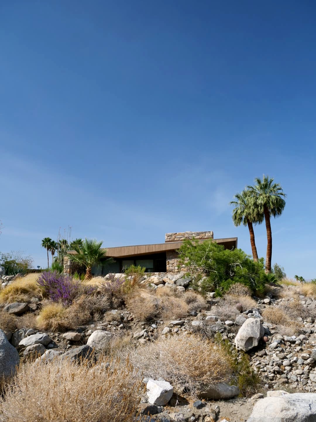 - Frey House II (686 Palisades Dr) : perché sur une petite coline, cette maison de l’architecte Albert Frey de 1964 se fond dans son environnement.