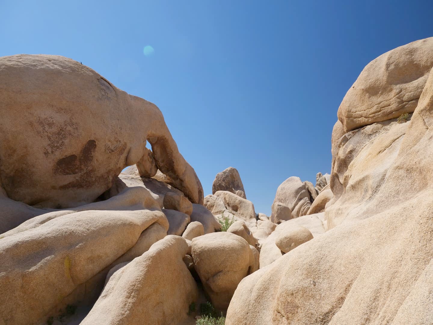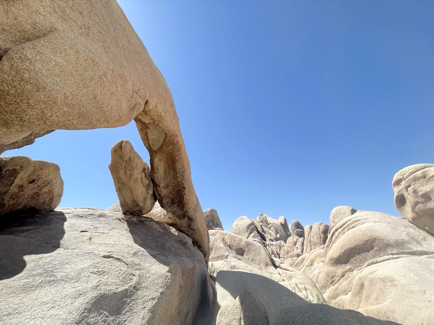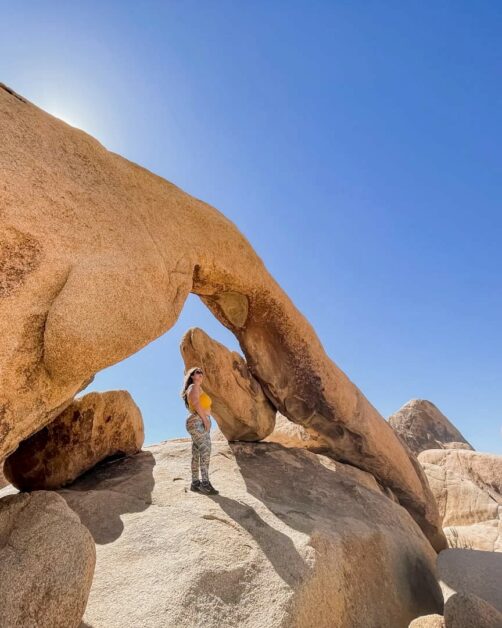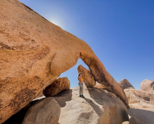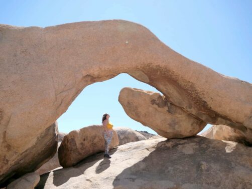 Notre arrêt suivant, Arch Rock, fut l’un de mes préférés. Certes, le Joshua Tree NP est moins connu pour ses arches que le Arches NP, mais je dois dire que cette « Arch Rock » est l’une de celles que j’ai préférée durant ce voyage ! Il faut dire qu’elle est très facile d’accès (le trail fait 500 m), entourée par des paysages splendides, et pas si fréquentée que d’autres. Avec la lumière du matin, c’était à nouveau parfait !