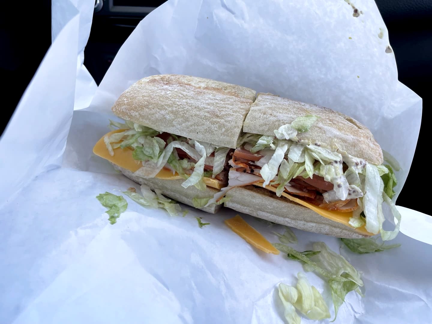 Pour gagner du temps (on avait encore beaucoup de route à faire !), nous avons été prendre de (très bons) sandwichs chez Roadrunner Grab n Go, un petit shop de take-away, avec plein de produits locaux, très populaire (si vous rentrez dans le parc par ce côté, vous pouvez aussi vous y arrêter pour prendre un petit-déj ou pour faire un pique-nique dans le parc !).