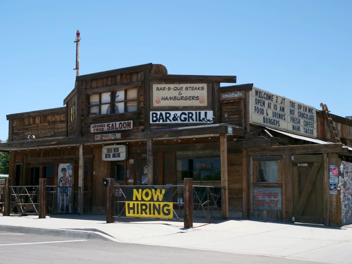 À la sortie de la route principale, on tombe directement dans le village de Joshua Tree, où vous trouverez de nombreuses possibilités de logement et de restauration.