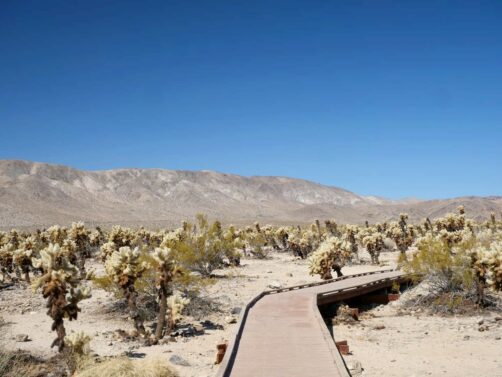 Si vous vous levez tôt, vous pouvez commencer la journée en gravissant le Mastodon Peak, un sommet montagneux qui vous offrira des points de vues panoramiques sur le parc et au-delà. Comptez 3 miles / 2 heures au total. Comme on a préféré profiter un peu plus de notre hôtel à Palm Springs, nous avons zappé cet arrêt.