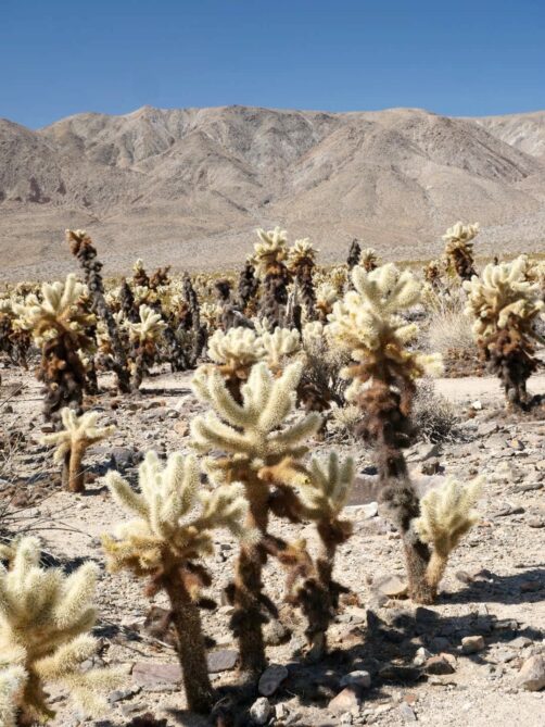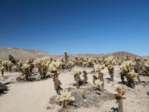 Notre premier arrêt dans le parc fut le charmant « Cholla Cactus Garden », un petit trail de 400 mètres qui vous permet de vous balader au milieu des cactus. C’est aussi un bon spot pour le lever du soleil, et les lumières le matin y sont sublimes, on dirait que les cactus brillent !