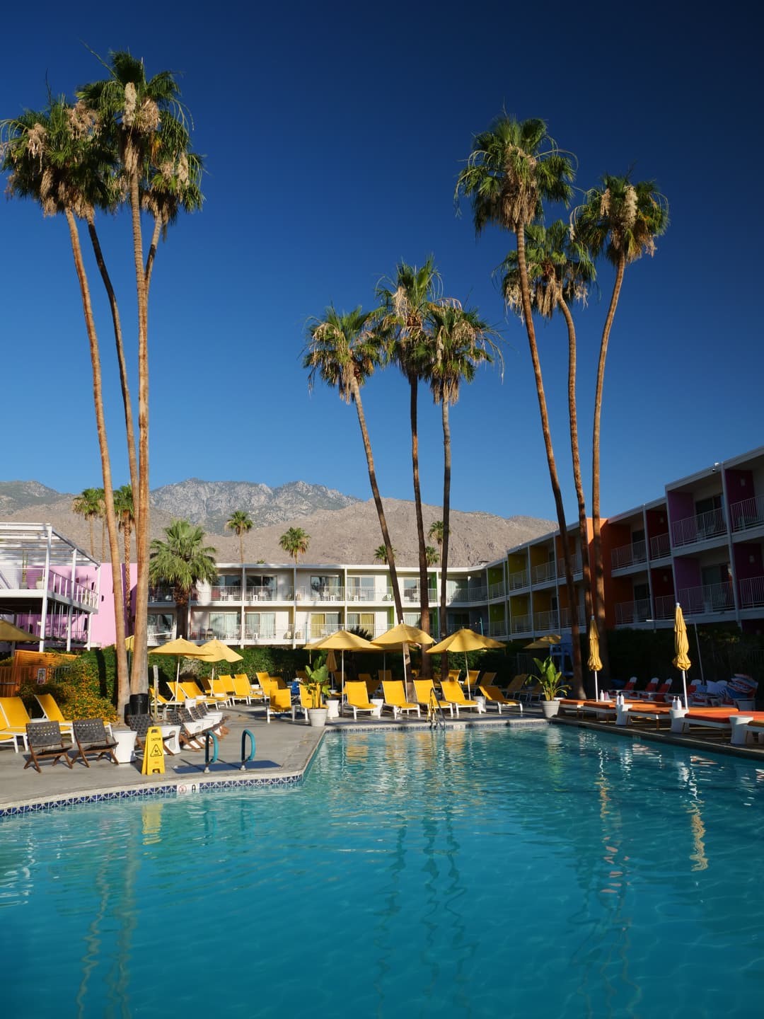 Toute la région n’est pas du tout bon marché, mais en s’y prenant un peu à l’avance, il y a aussi plus de chance de trouver un bon deal à Palm Springs qu’au village de Joshua Tree (car plus de compétition). On a logé au très coloré The Saguaro Palm Springs, un hôtel tendance qui m’a beaucoup plu ! Lire mon article complet sur Palm Springs.