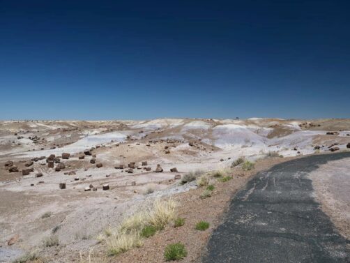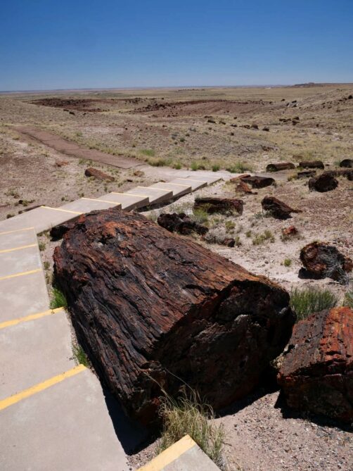 - Long Logs Trail : un loop de 2,5 km pour voir la plus grande concentration d’arbres pétrifiés du parc (compter une heure).