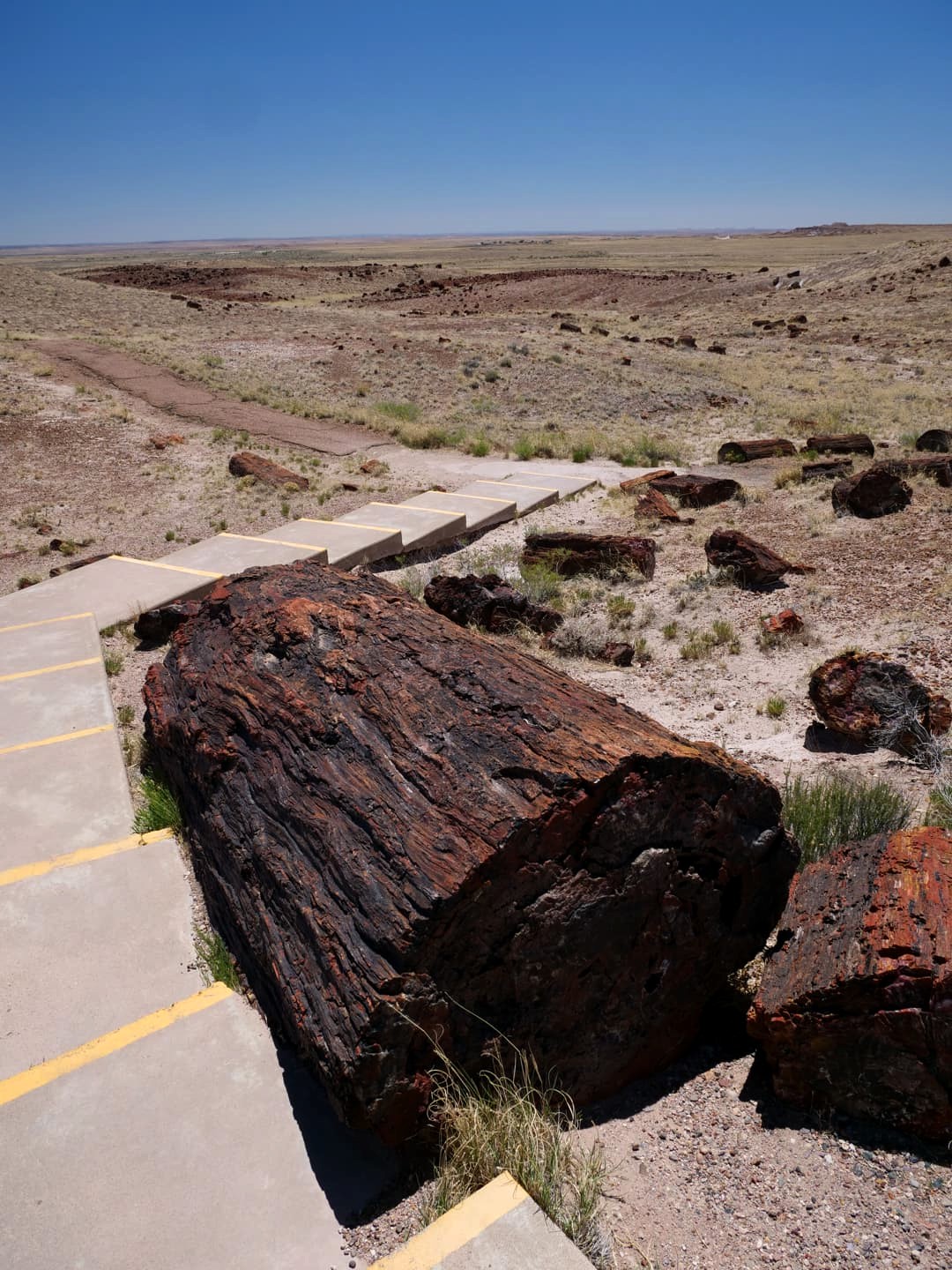 Derrière le musée se trouve un petit trail facile de 600 mètres qui permet de voir de très quelques uns des plus grands troncs d’arbres pétrifiés du parc : la Giant Logs Trail.
