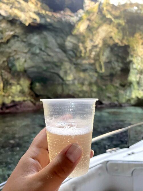 A la fin de la balade, nous nous sommes arrêtés pour nager dans l’une des grottes, dans laquelle l’eau était calme même à cette saison. C’était ultra agréable ! Et au retour sur le bateau, un petit prosecco m’attendais (oui, j’ai été la seule à aller nager !).