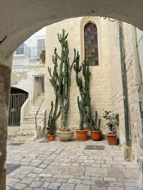 Les stations balnéaires de Monopoli et Polignano a Mare n’étant séparées que par 15 minutes de route, le mieux est de choisir une seule base pour explorer les deux villes et leurs alentours. Comme souvent (et en particulier pour ce voyage dans les Pouilles), c’est un hébergement de charme que j’avais repéré (Borgo Albergo 35 Relax & Spa, on en reparle plus bas), qui m’a poussé à choisir Monopoli comme base. J’ai aussi trouvé Monopoli un peu moins touristique que Polignano a Mare, donc ce fut un bon choix.