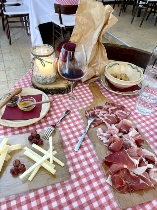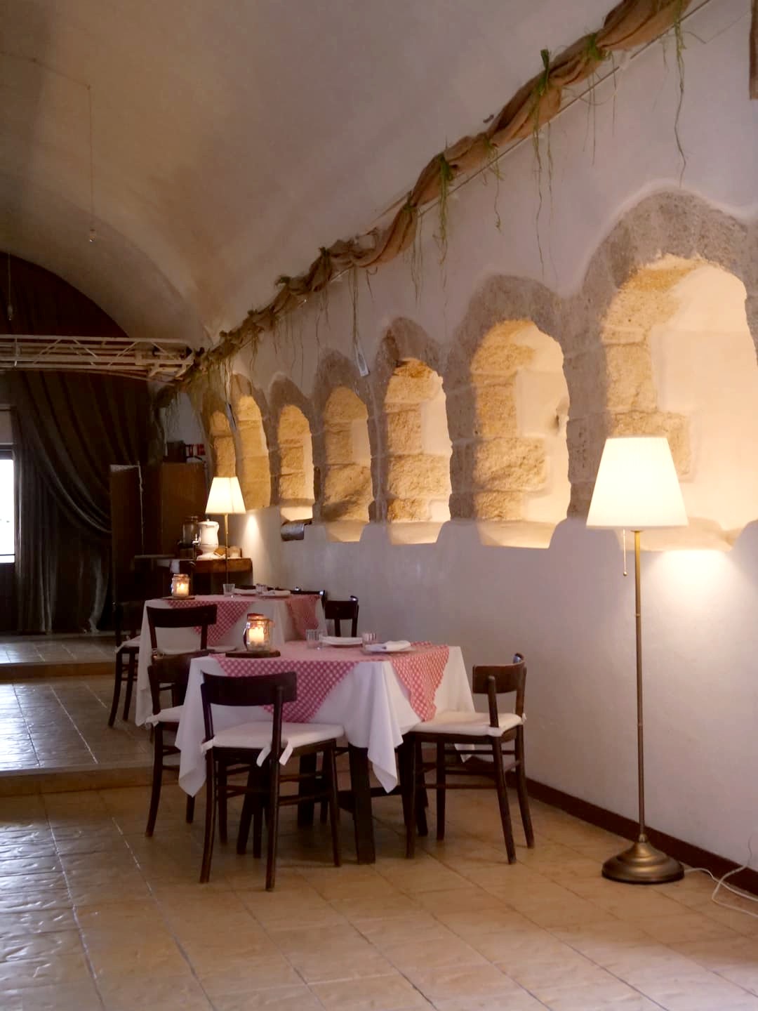 Nous avons choisi la combinaison visite guidée + repas sous forme de dégustation de produits locaux à la masseria, à laquelle on a rajouté quelques trucs en plus à la carte. Le repas était bon, mais assez simple (assiette de fromages et charcuteries de la région, carpaccios). Le cadre du restaurant est par contre lui aussi très agréable, que ce soit l’intérieur ou la terrasse à l’extérieur à la belle saison.