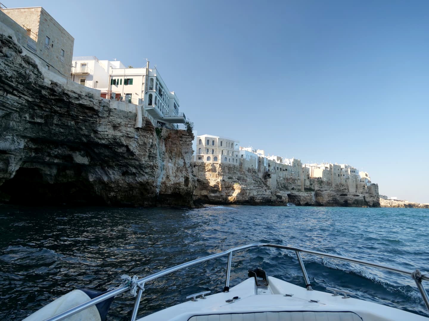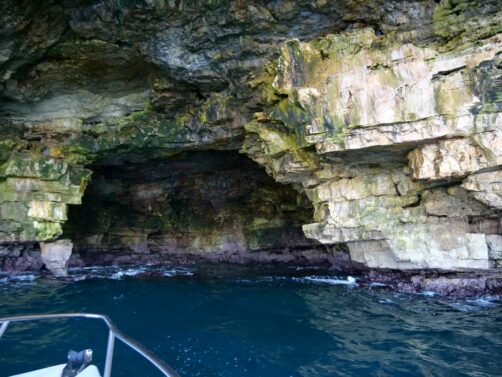 Nous n’étions que 4 passagers au total sur ce petit bateau rapide, ultra confortable. Le tour consiste à faire une balade le long de Polignano a Mare, en s’arrêtant au passage dans quelques unes des nombreuses grottes qui se cachent sur la côte.