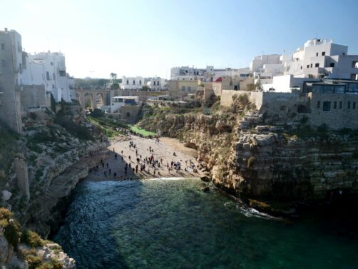 Alors pour profiter réellement de Polignano a Mare, il n’y a qu’une seule solution : y arriver très tôt ! Par contre, hors saison, cela veut dire que sa célèbre plage de Lama Monachile, entourée par les falaises abruptes, ne sera pas encore au soleil… Et le temps qu’il arrive sur la plage, elle sera déjà bondée ! Ce fut pour moi une déception : je n’ai pas très bien compris pourquoi cette plage était l’une des plus photographiée d’Italie…