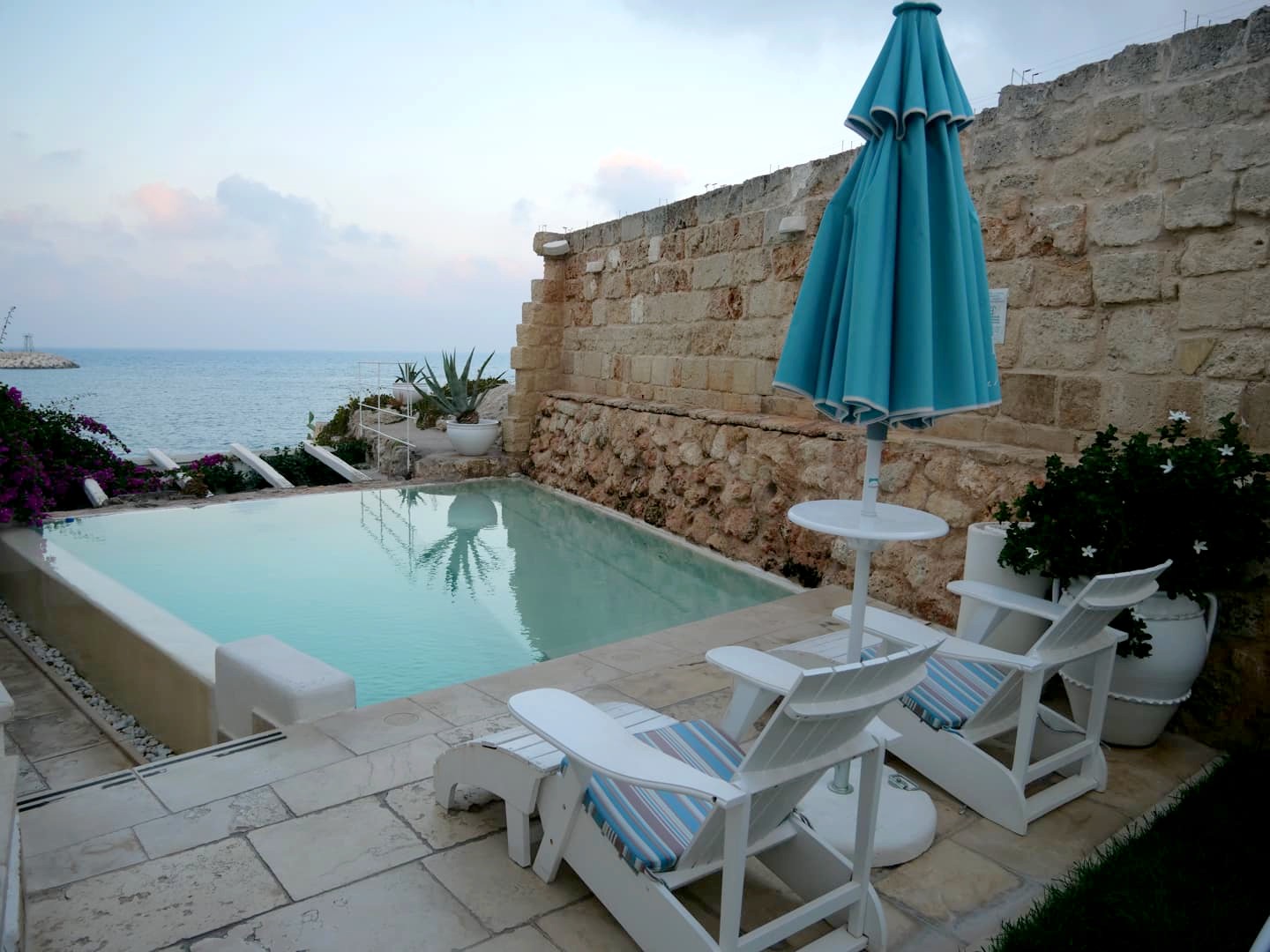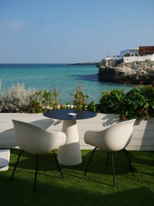 L’adresse incontournable à Monopoli, c’est probablement Don Ferrante, qui est à la fois un hôtel, un restaurant et un bar. Installé en bord de mer le long des remparts, il s’agit d’un établissement haut de gamme (avec les tarifs en conséquence), équipé notamment d’une petite piscine extérieure, chose plutôt unique à Monopoli. Nous avions hésité à y loger également, mais finalement nous avons juste été y boire un verre.