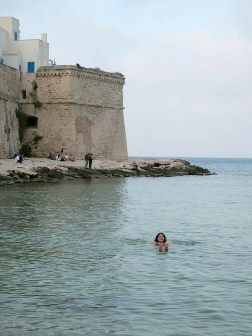 Et puis surtout : la couleur de l’eau ! Ce n’est pas étonnant que ce bleu intense ait inspiré Domenico Modugno, l’auteur de Nel blu dipinto di blu – attention ça va vous rester en tête – qui venait de Polignano.