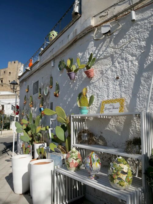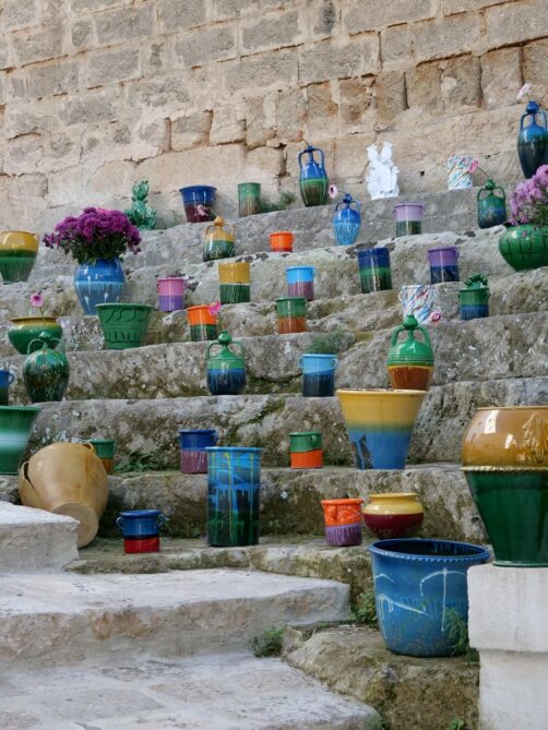 Située à 20 minutes de route de Tarente, Grottaglie est une destination assez méconnue des Pouilles, mais qui mérite pourtant un arrêt de quelques heures ! En effet, cette petite ville au centre historique charmant est la « capitale » de la céramique de la région. Les dizaines de fabriques de céramique de Grottaglie produisent la grande partie de toute la vaisselle et autres créations en céramique que vous pourrez voir dans les Pouilles. C’est donc l’endroit parfait pour y faire du shopping, ou juste un peu de lèche-vitrine !