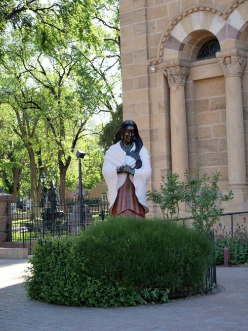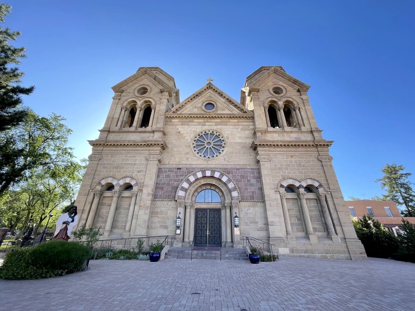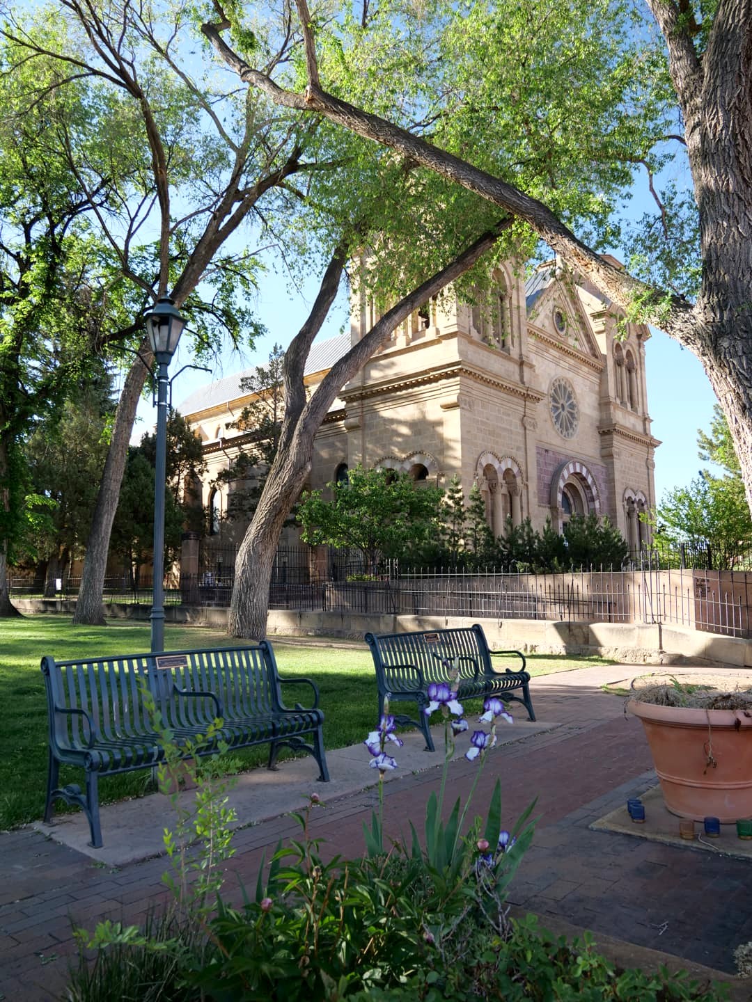 Au milieu de toute cette architecture en adobe, la Cathédrale de Santa Fe étonne ! En effet, cette cathédrale du 19ème siècle, n’a ni été construite en adobe ni dans un style Pueblo, mais dans un style néo-roman, que l’on doit au premier archêveque de Santa Fe qui était… français (les vitraux de la cathédrale sont d’ailleurs, eux aussi, français).