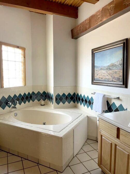 Nous avons opté pour cet hébergement Santa Fe Style typique à la fois pour sa localisation calme mais pratique, son parking gratuit et… sa chambre traditionnelle avec bain à bulles (oui, on ne se refait pas). La chambre était bien spacieuse, très joliment décorée, et avec en bonus un bon petit-déjeuner. Si vous cherchez une option de charme avec un budget modéré à Santa Fe, je vous recommande cet endroit les yeux fermés !