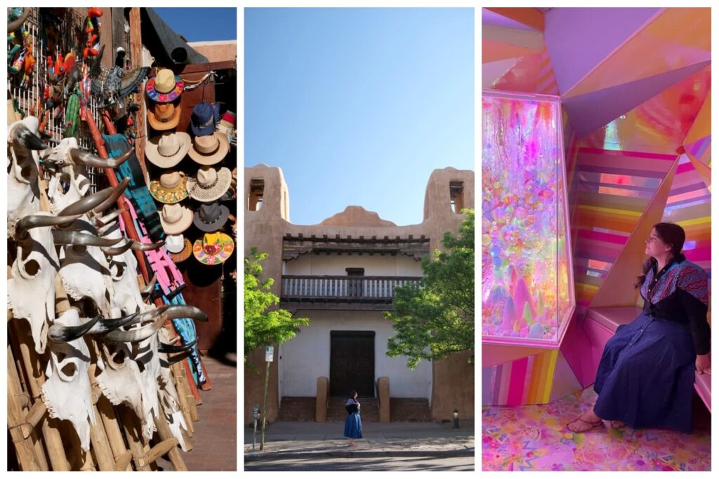 Après deux jours sur la Route 66, me voici arrivée dans la capitale de l’état du Nouveau-Mexique, Santa Fe. Plus vieille (et aussi plus haute) capitale des USA, Santa Fe est une ville artistique et culturelle, où cohabitent merveilleusement les influences amérindiennes, espagnoles et américaines. Ce mélange unique a d’ailleurs donné naissance à un style architectural propre à Santa Fe : le Santa Fe Style, avec ses maisons en adobe typiques. Bien loin des gratte-ciel traditionnels des Downtown des grosses villes américaines ! Santa Fe est clairement une capitale unique, et l’une des plus belles villes que j’ai pu visiter aux Etats-Unis. Il y règne une atmosphère indescriptible, on s’y sent tout de suite bien. Pas étonnant qu’elle ait inspiré tant d’artistes ! Dans cet article, je partage avec vous notre visite de Santa Fe et tous mes conseils pour y passer une journée ou plus lors d’un roadtrip dans le sud-ouest américain.
