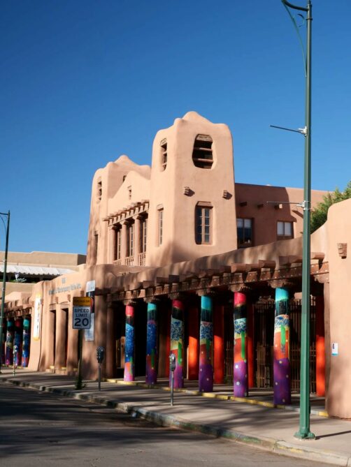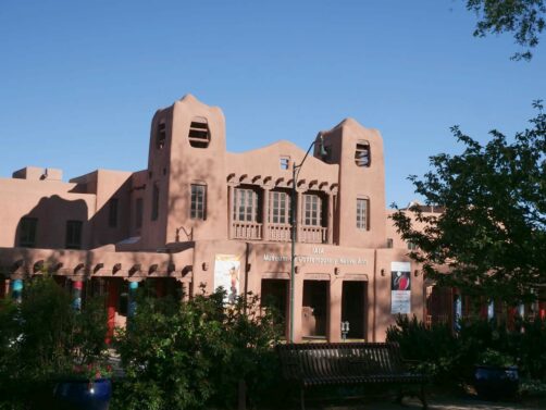 Juste à côté se trouve également le New Mexico Museum of Art, un des bâtiments pionniers du Santa Fe Style, dédié à l’art du Nouveau-Mexique sous toutes ses formes. On y retrouve notamment des oeuvres de Georgia O’Keeffe, cette peintre américaine avant-gardiste, qui a beaucoup été inspirée par Santa Fe et ses environs, sa région d’adoption (qu’on surnomme d’ailleurs depuis le « O’Keeffe Country » !), et qui a d’ailleurs un musée entier qui lui est dédié quelques rues plus loin (Georgia O’Keeffe Museum).
