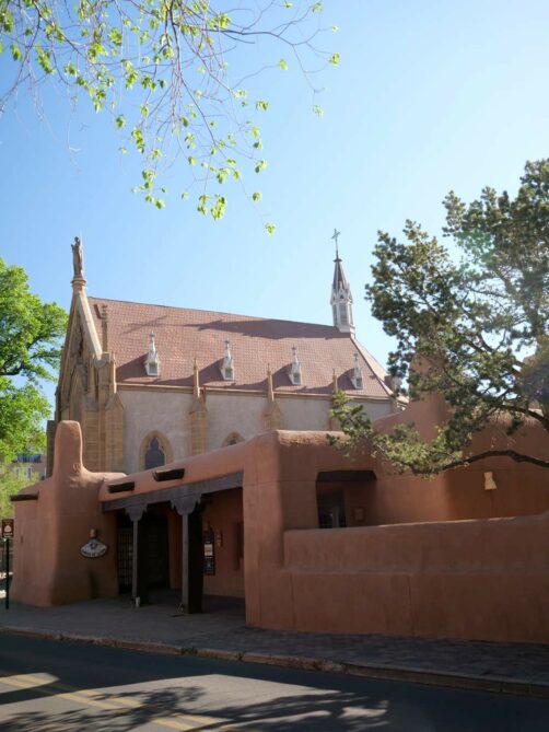 Premier arrêt en arrivant du centre : la Loretto Chapel, une étonnante chapelle du 19ème inspirée par la Sainte-Chapelle de Paris ! Elle est surtout connue pour son ingénieux escalier en spiral, dont la construction semble « miraculeuse » (accès payant).