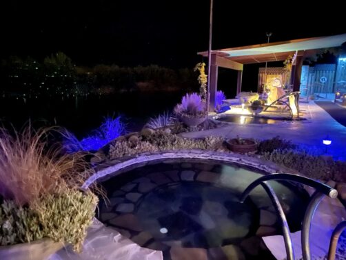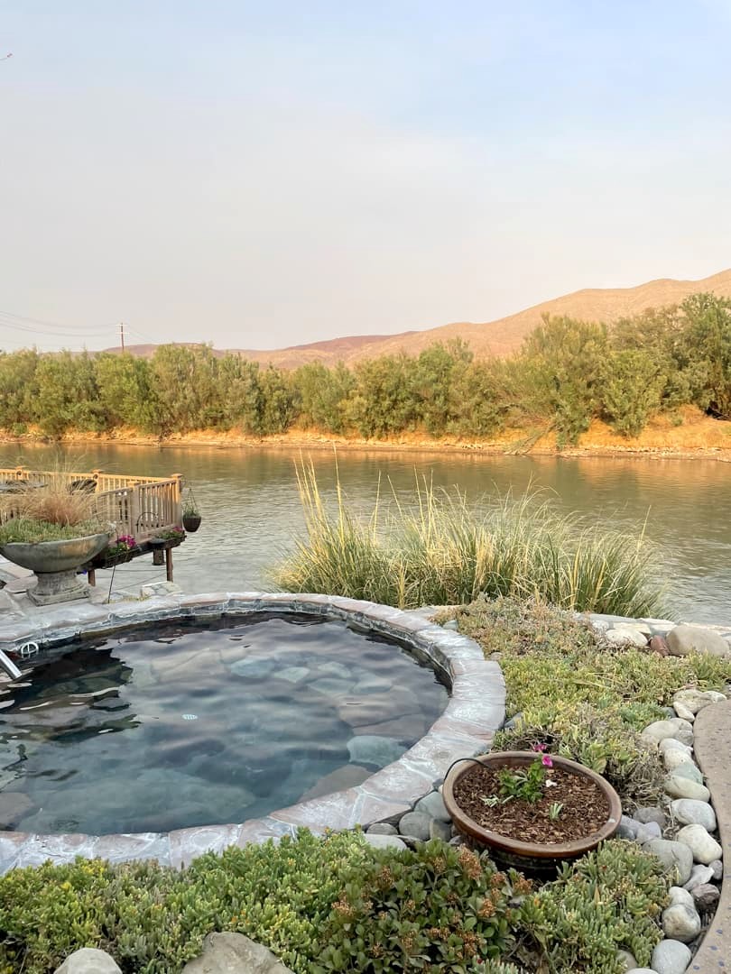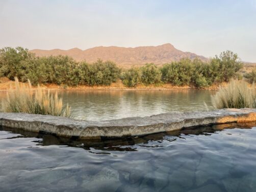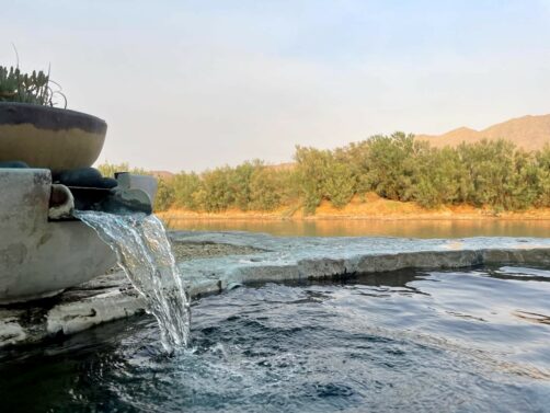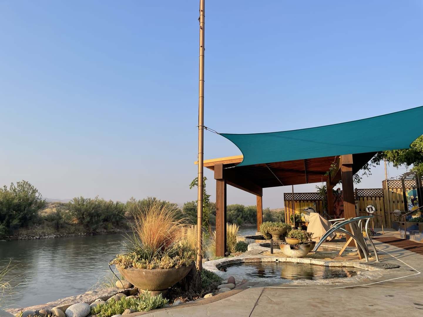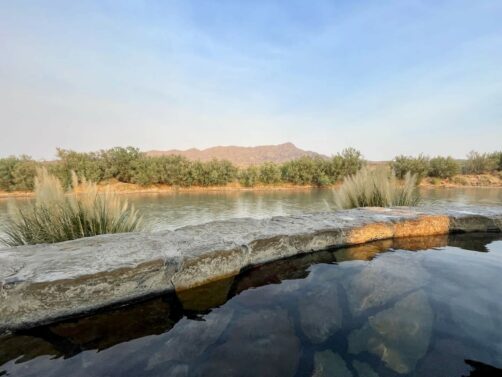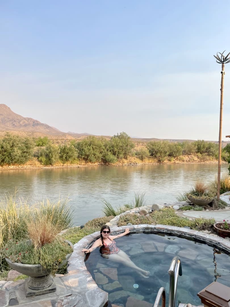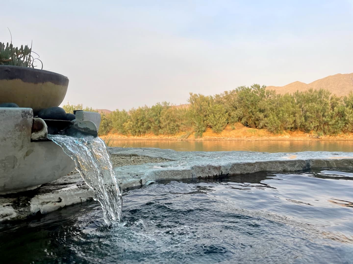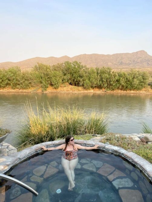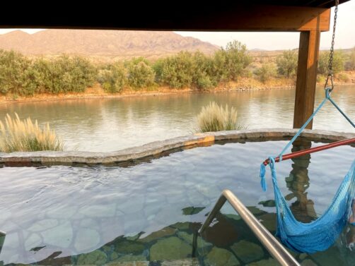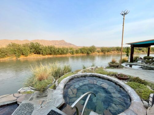 Nous avons passé la nuit au Riverbend Hot Springs, qui est le plus cher mais aussi le plus bel établissement thermal de Truth or Consequences, puisqu’il se situe directement sur les bords du Rio Grande. On peut donc observer le fleuve directement depuis les bassins d’eau thermale. Un cadre vraiment paisible !
