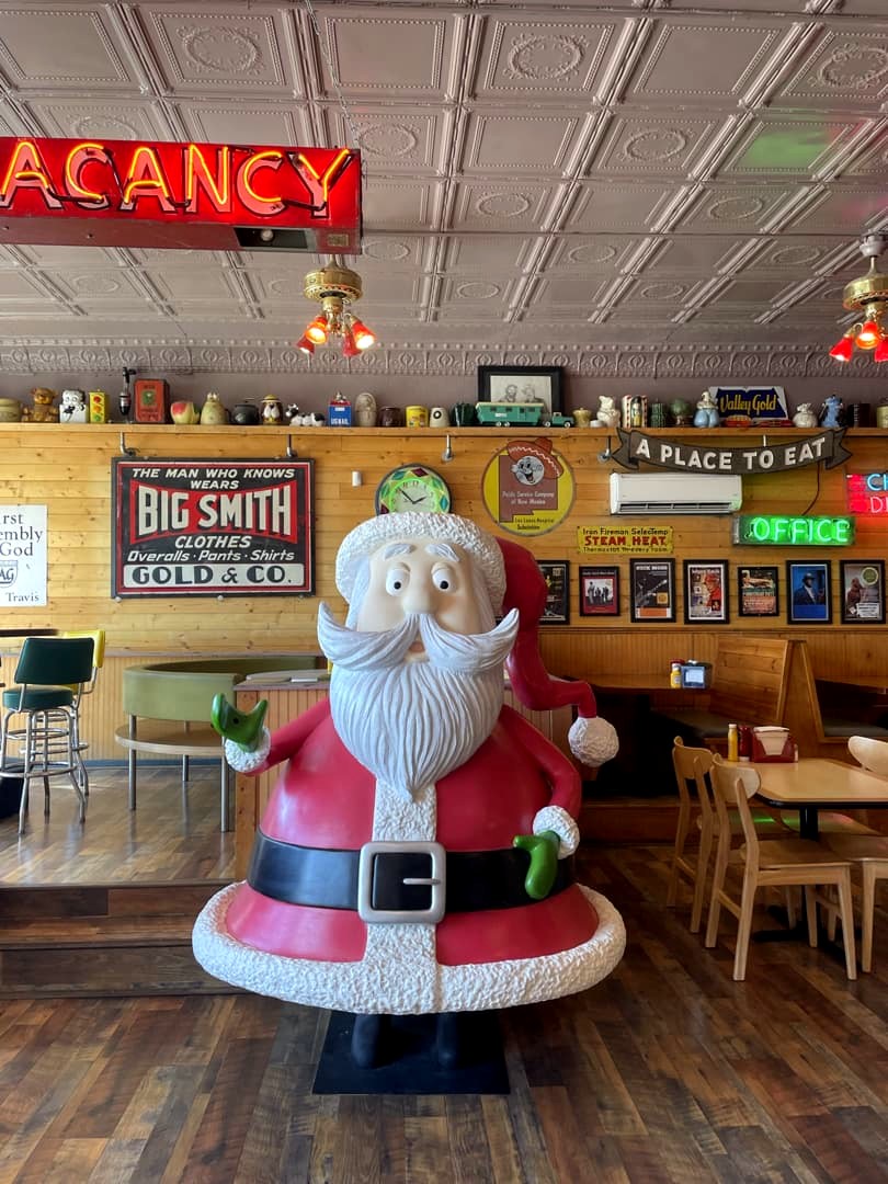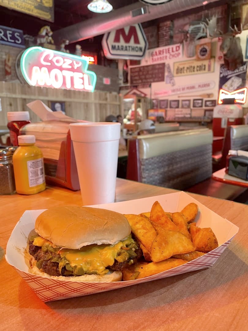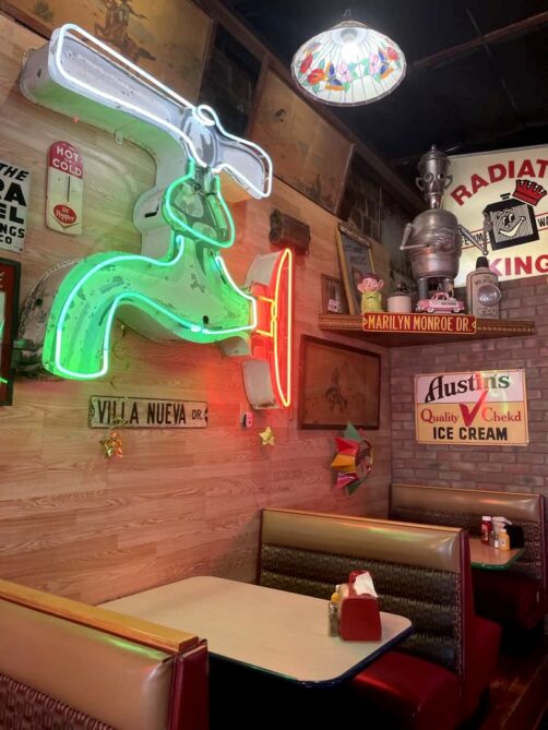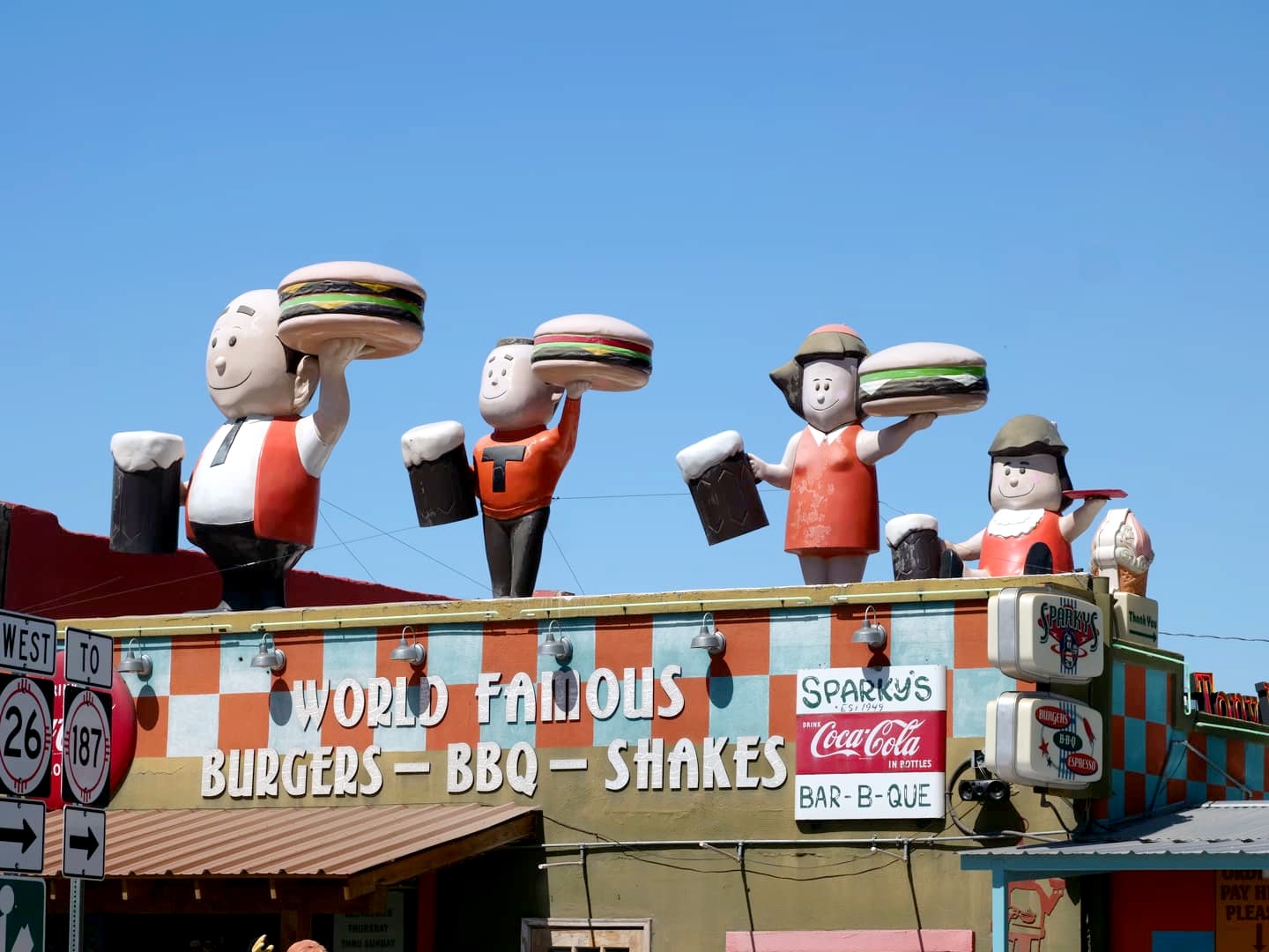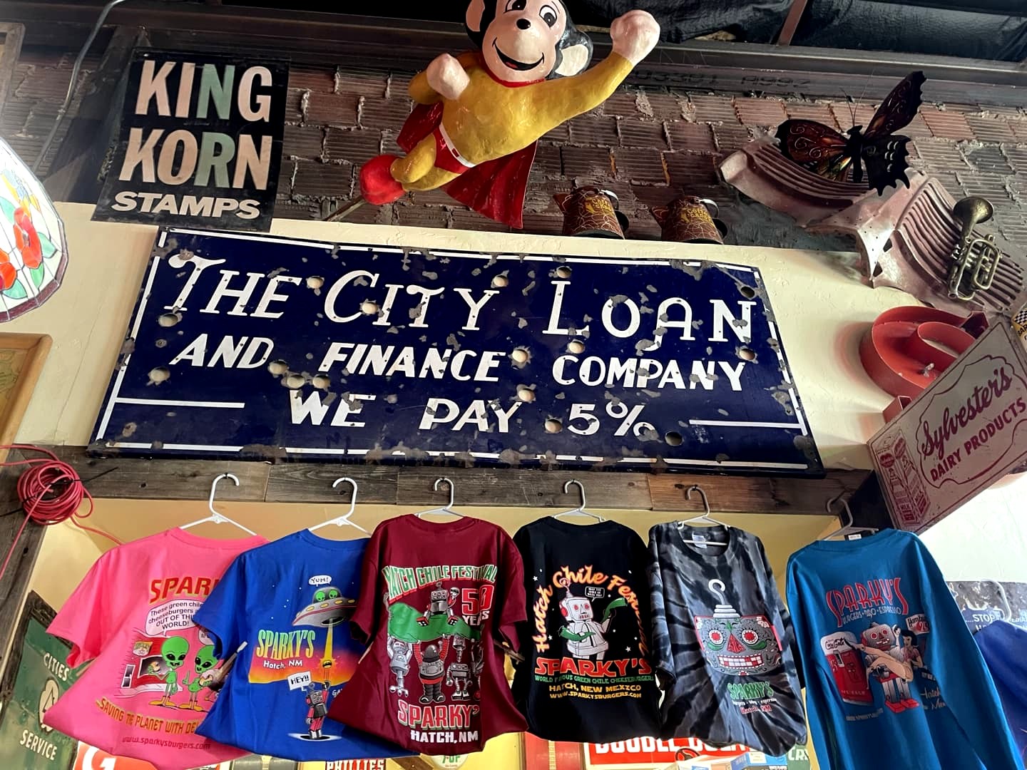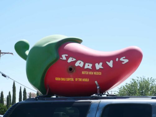 L’adresse immanquable de Hatch pour les amateurs de piquant, c’est Sparkys, qui a choisi son camp dans la « bataille des piments » puisque vous pourrez y déguster leur « World Famous » Green Chile Burger. C’est un resto qu’on peut difficilement manquer depuis la route, au vu de sa kitschissime décoration, aussi bien à l’intérieur qu’à l’extérieur ! Si vous aimez les endroits un peu rétros et l’accumulation de vieux objets très « Americana », vous risquez de bien apprécier cet endroit.