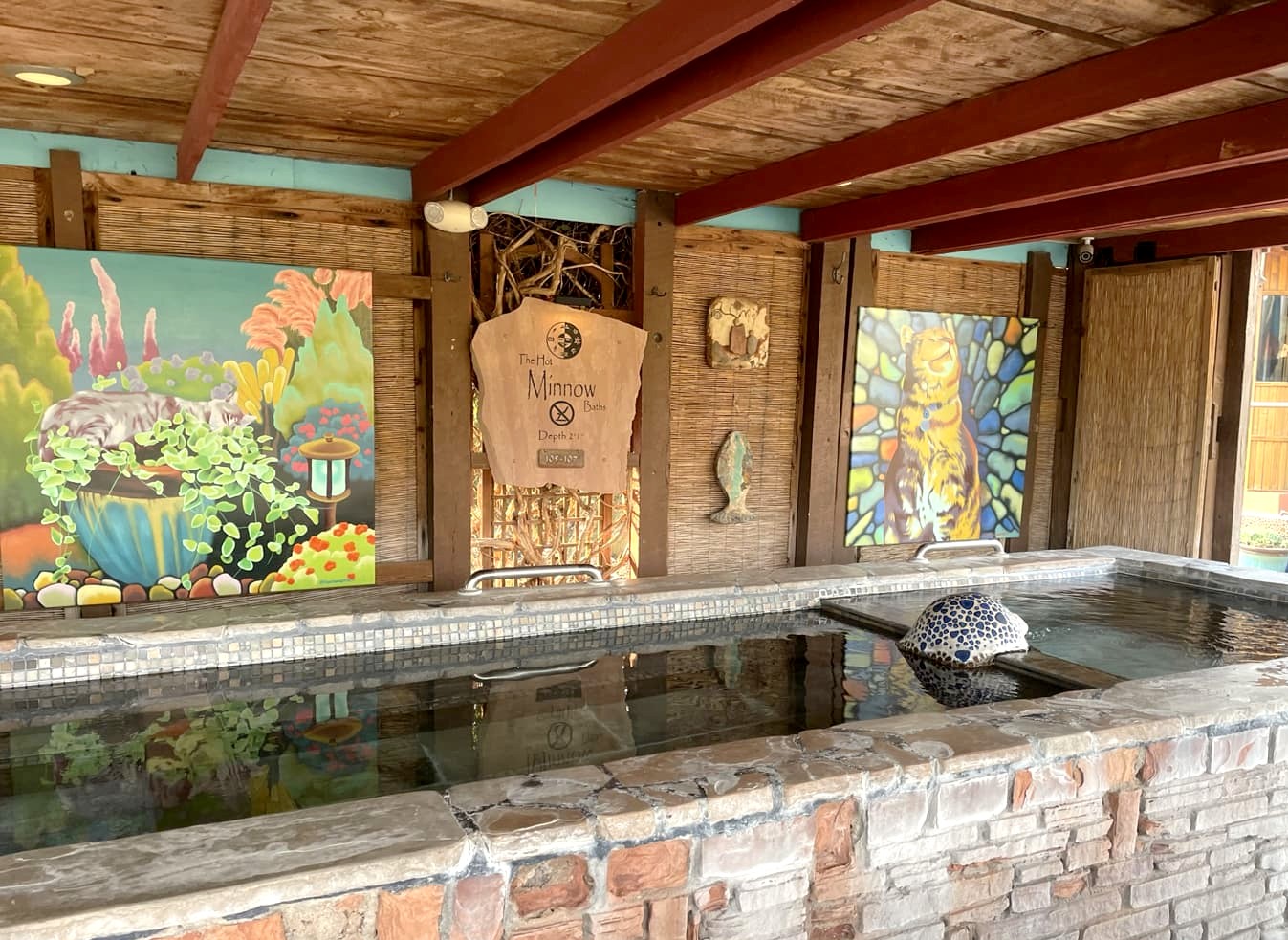 L’espace spa, accessible gratuitement lorsque vous logez sur place, est constitué de plusieurs bassins, à différentes températures, un sauna ainsi que quelques bains privés (en supplément et sur réservation). À certaines périodes de l’année, il y a même moyen de descendre pateauger dans le Rio Grande (mais l’accès était fermé lors de notre séjour). Faites bien attention aux jours de fermeture (pour l’entretien des bassins) : ils sont bien indiqués sur leur site web.