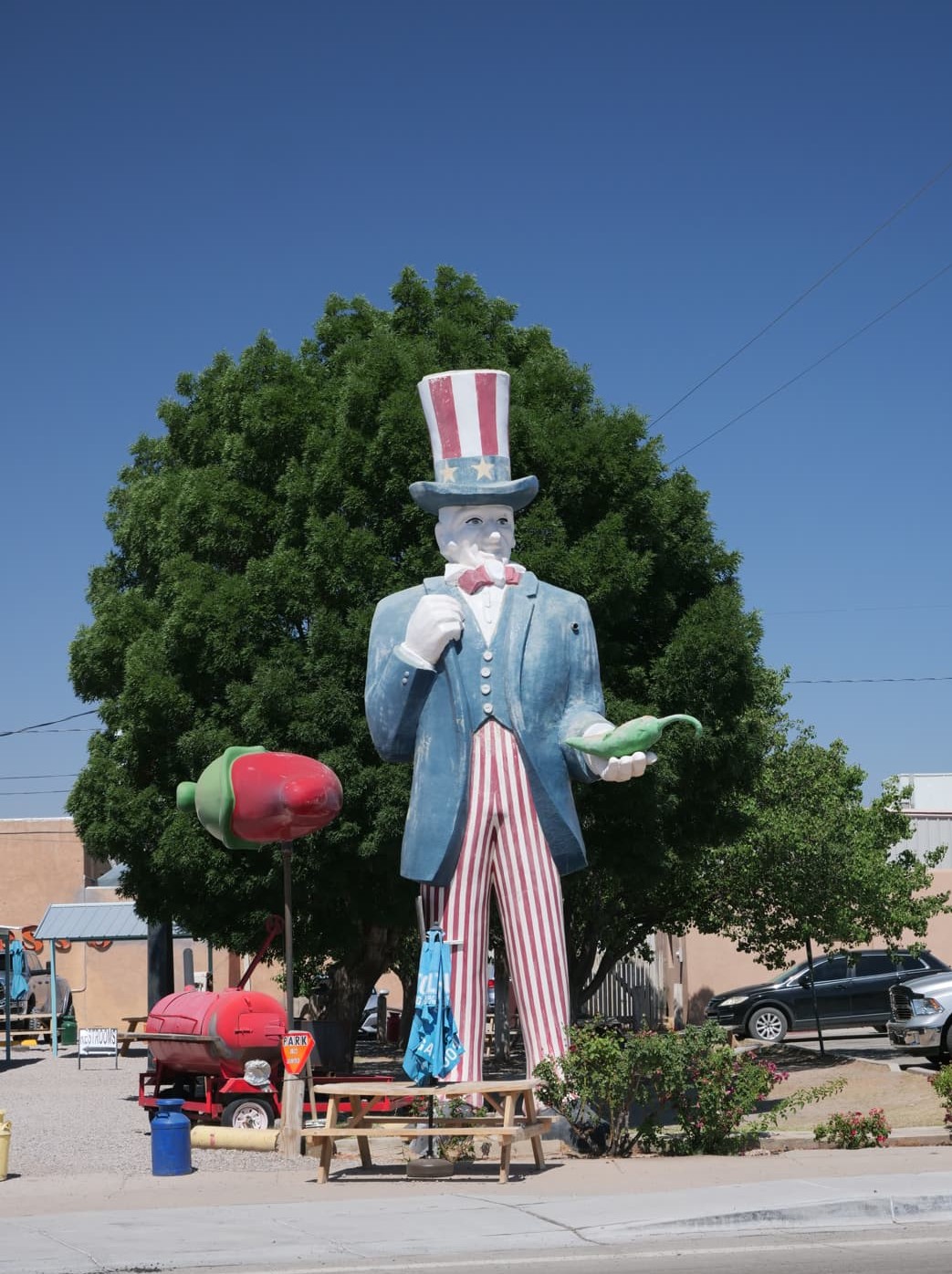 À 40 minutes de Truth or Consequences (= tout près au Nouveau-Mexique !), en direction d’El Paso, ne manquez pas non plus de vous arrêter à Hatch, auto-proclamée « Chile Capital of the World », la capitale mondiale du chili. Comme je vous l’expliquais dans mes articles précédents, la plupart des spécialités culinaires du Nouveau-Mexique intègrent d’une manière ou d’une autre du chili, avec deux écoles : la team « green chile » et la team « red chile ». Vous verrez les piments pendre le long de la route, dans les quelques boutiques de la ville, qui a part ça n’a pas grand intérêt.
