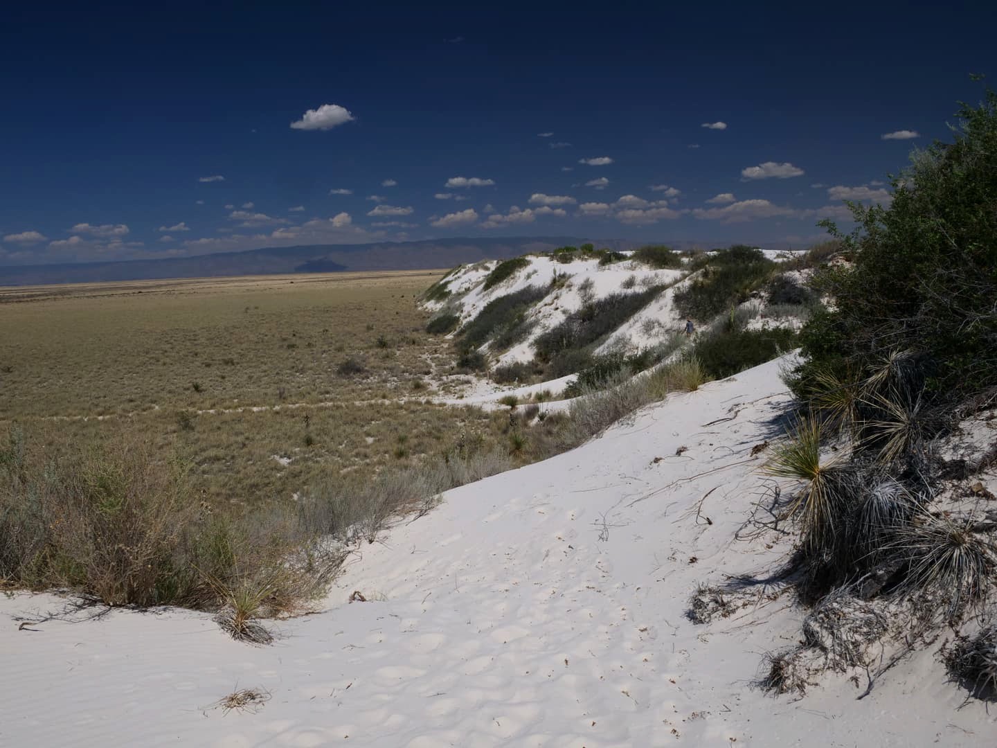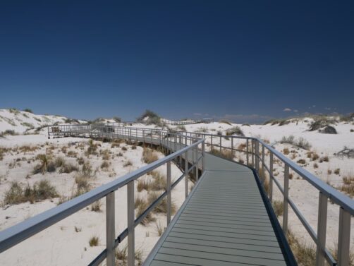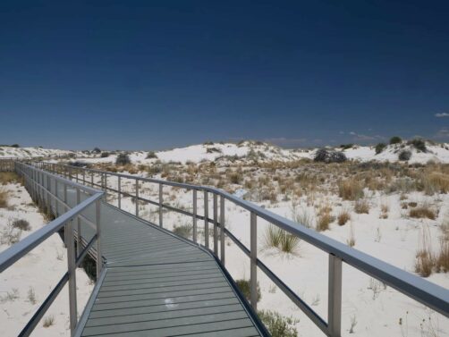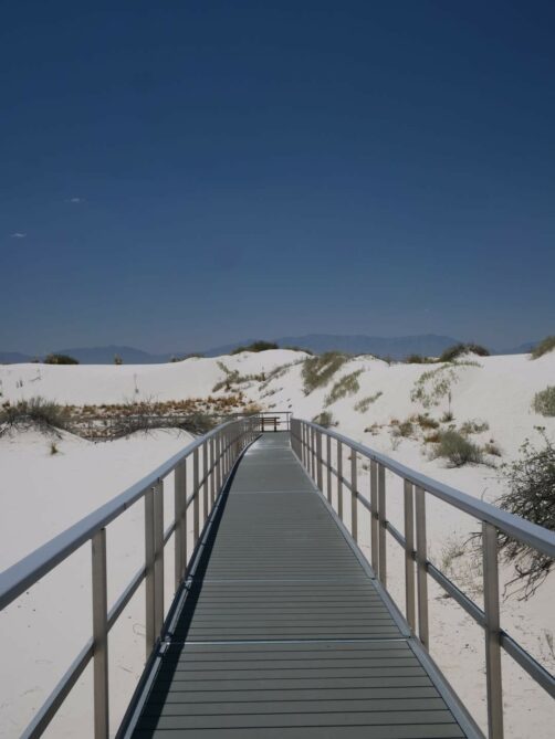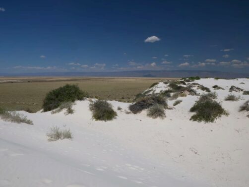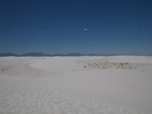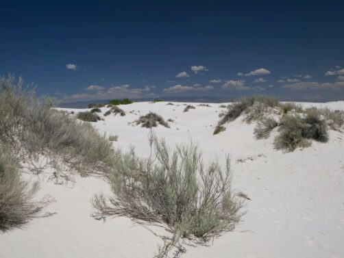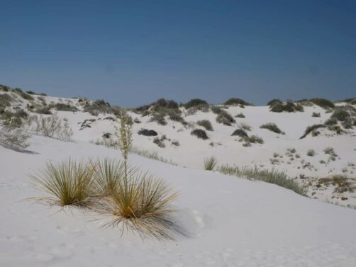 Les dunes blanches du bien nommé White Sands National Park constituent le plus grand désert de gypse au monde. Ces dunes assez uniques sont créées à partir de lacs ou « playa » éphémères, riches en minéraux. Quand l’eau s’évapore, cela laisse de grands dépôts de gypse, qui grâce au vent forment au fil du temps ces grandes dunes. Même si c’est un environnement qui parait assez hostile, à cause du micro-climat très chaud de cette région, on y trouve tout de même des plantes et des animaux qui se sont adaptés à cet environnement particulier. Ses paysages iréels lui ont valu d’apparaître à de nombreuses reprises au cinéma, notamment dans « Transformers » et « Finch ».