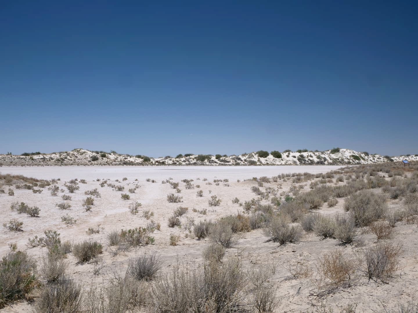 Au début de la Dunes Drive, on passe d’abord devant un court trail d’environ 300 mètres qui permet d’accéder à une « playa », un petit lac qui se rempli uniquement en cas de fortes pluies. Malheureusement, il était à sec lors de notre visite.