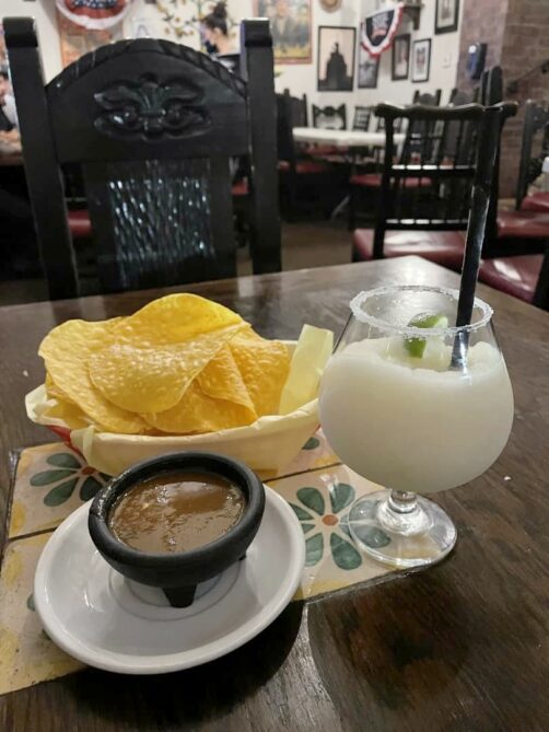 On dirait que toute la ville s’est donnée rendez-vous ici pour goûter à la cuisine Tex-Mex, ultra copieuse, de la maison. Tout ce que les Etats-Unis font déjà en grande taille, le Texas en remettra encore une couche ! Ca se voit d’ailleurs dans la cartes des (excellentes) margaritas de la maison, disponibles en plusieurs taille, dont la plus grande est la « Texas-Sized » (je me suis contentée de la « El Paso-Sized, déjà tellement énorme qu’ils m’ont proposé la fin à emporter !).