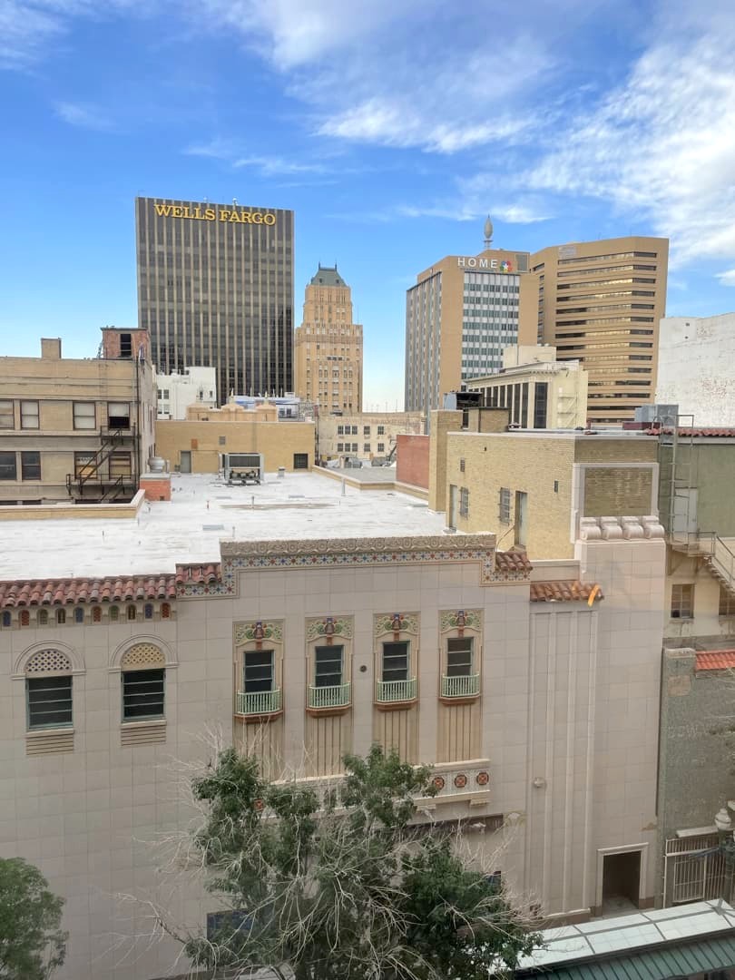 Sans la réouverture du Plaza, c’est probablement à l’Hotel Paso Del Norte, l’autre hôtel historique du centre-ville, situé juste à côté et rénové aussi quelques années avant, que nous aurions logé. Il s’agit ici aussi d’une très belle adresse, assez chic. L’hôtel est notamment connu pour son splendide Dome Bar, accessible à tous pour un petit cocktail, et avec également de la musique au piano si vous avez de la chance.