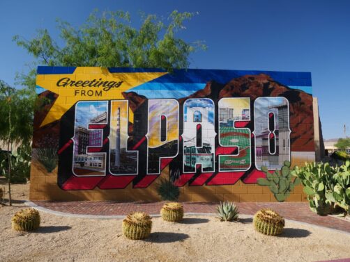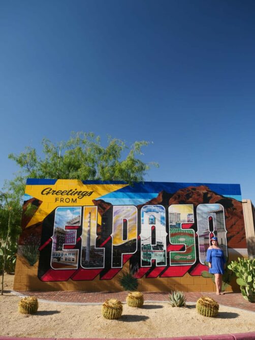 El Paso est aussi connue pour son street art, qu’on peut retrouver un peu partout en ville. La plus grande concentration se situe dans le quartier de Segundo Barrio. On a pas eu le temps de tout découvrir, mais je suis quand même passée par mon arrêt incontournable à la fresque du Greetings Tour. Leur « Greetings from El Paso Mural » se trouve au 145 E Sunset Rd (face à un centre commercial).