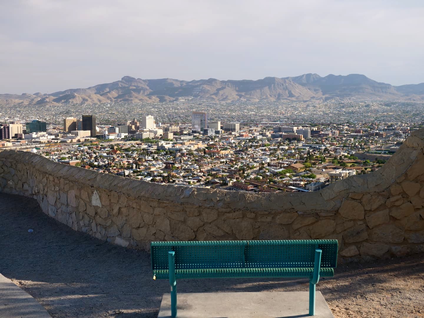 Au lieu de passer la frontière, on a préféré débarquer en ville via la Scenic Drive, une route qui s’élève dans les hauteurs d’El Paso, et offre depuis ses hauteurs plusieurs points de vue sur El Paso, Ciudad Juarez et le Rio Grande.