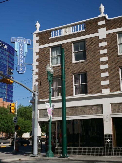 Si les trois hôtels précédents ont souvent des tarifs assez elevés, les petits budgets seront ravis de découvrir cette dernière adresse : le Gardner Hotel. Ouvert en 1922, il s’agit aujourd’hui de l’hôtel le plus ancien et continuellement en activité de El Paso. Même si aujourd’hui, il est moins « haut de gamme » que les autres (il y a même une partie dortoirs), il a vu passer de nombreuses célébrités au cours de son histoire et a tout de même gardé un certin cachet. L’hôtel est notamment « connu » pour avoir abrité le voleur de banque John Dillinger dans les années 30.