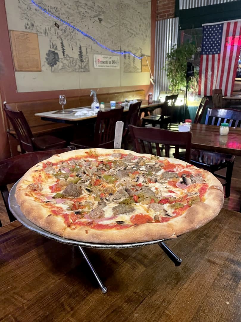 Dans les assiettes, c’est vraiment très, très copieux. On s’est fait conseiller pour ne pas se « tromper » de taille de pizza, mais celle qui a fini devant nous était incroyablement grande, même pour deux personnes ! Ce sont des pizzas typiquement « américaines », mais dans le style, c’était franchement très bon (et on peut prendre les restes à emporter, évidemment).