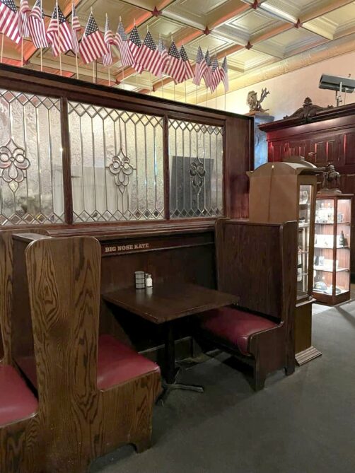 Mes recherches m’apprennent que le saloon, à ses tous débuts, a été fréquenté par Wyatt Eearp et Doc Holiday, qui ont d’ailleurs été impliqués dans des fusillades ici, avant la célèbre fusillade de Tombstone, tuant 3 hommes. Super leur petite virée dans le nord de l’Arizona ! Mais bien sûr, ce n’étaient pas les seuls et la ville était assez malfamée à l’époque. Mes recherches me confirment également que ce saloon est hanté, et pas qu’un peu. Il abriterait un esprit maléfique qui leur a vallu de participer à l’émission TV « Ghost Adventures ».