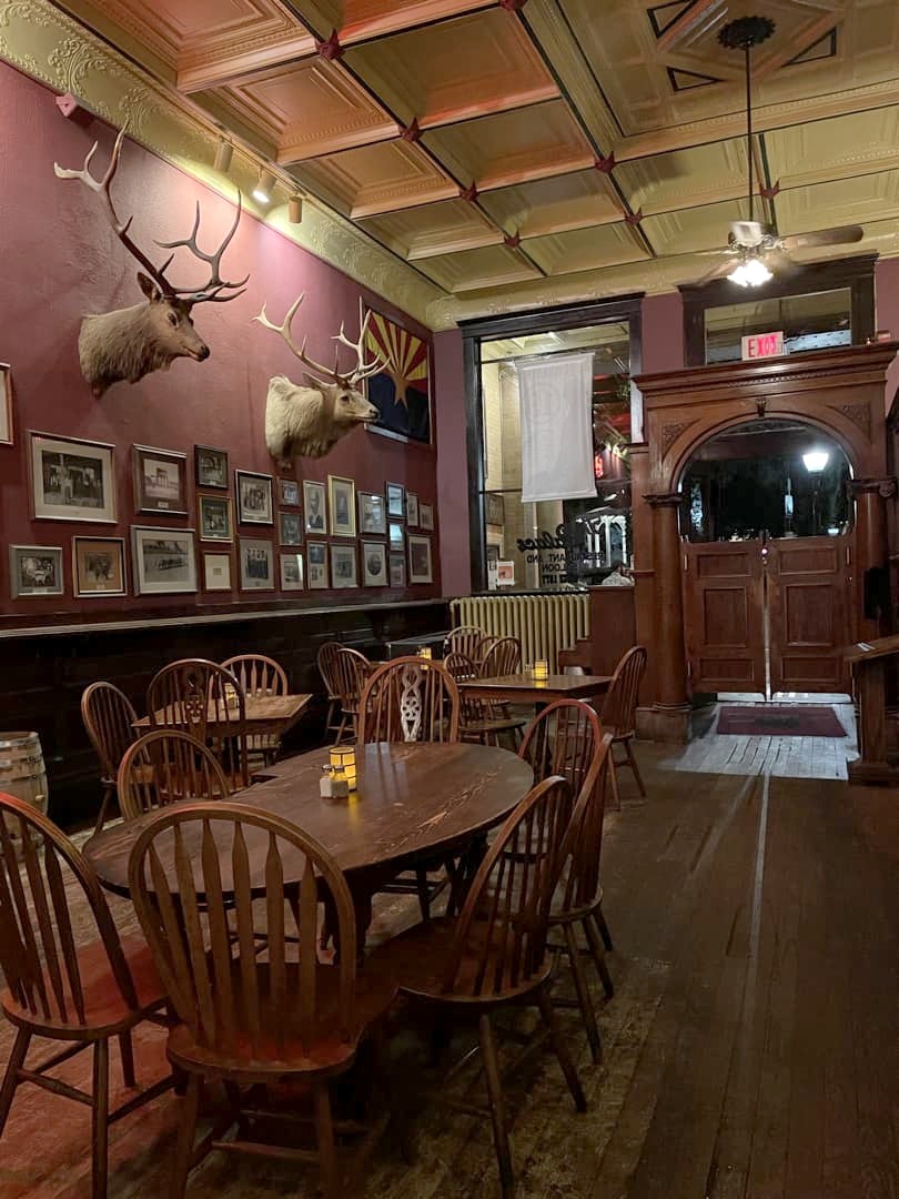 A part notre hôtel, l’autre endroit historique du centre de Prescott, c’est son saloon qui a été élu un des 10 meilleurs bars historiques des USA. On ne pouvait pas manquer ça (même si étonnemment, lui aussi fermait très tôt – un grand classique dans le sud-ouest !).