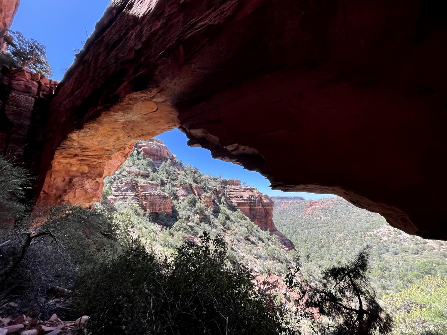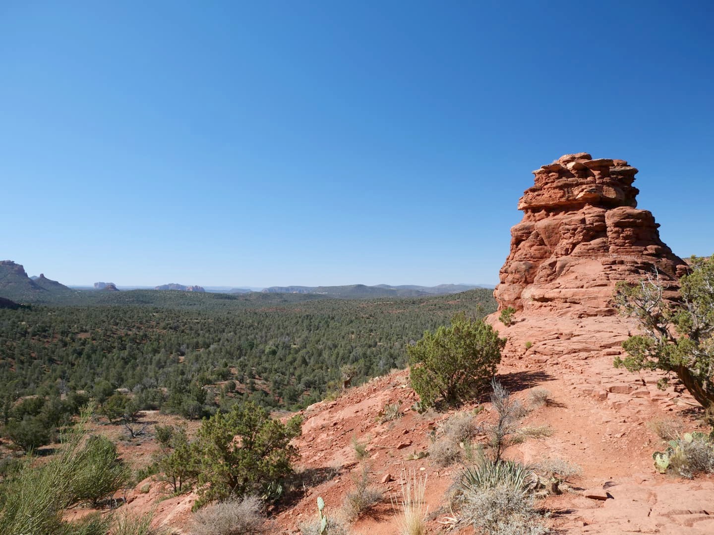 Le dernier des grands vortex naturels de Sedona est le Vortex de Boynton Canyon, et c’est pour moi le plus agréable à découvrir. On y accède via une randonnée facile, puisque le vortex est accessible en moins de 30 minutes de marche depuis le parking. Il s’agit aussi d’un endroit beaucoup moins fréquenté, ce qui rend l’expérience encore plus agréable. Je vous recommande cependant d’éviter les heures les plus chaudes de la journée pour faire cette randonnée, car il n’y a pas beaucoup d’ombre. A l’arrivée, les vues sur les environs sont splendides !