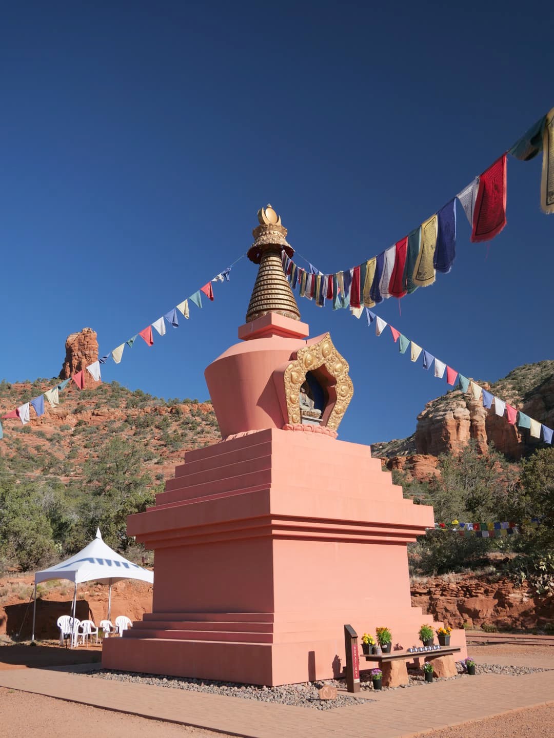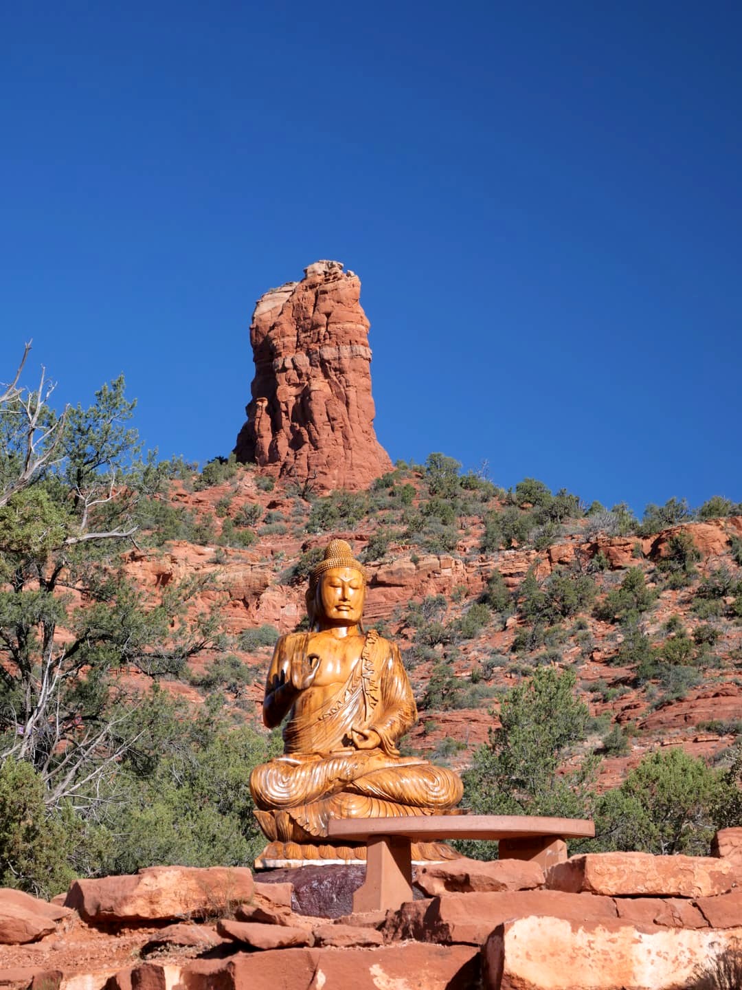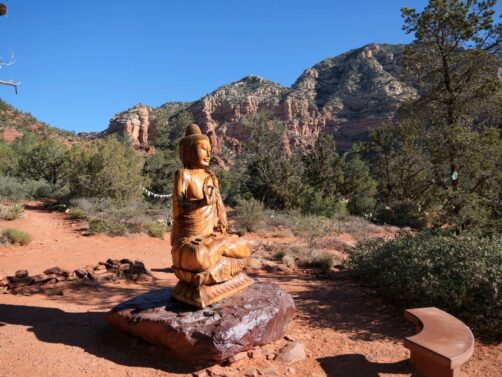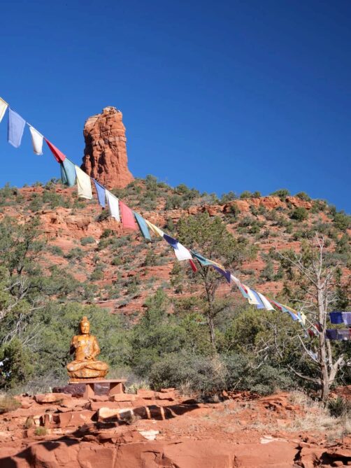 Un arrêt insolite à Sedona, et facile d’accès puisqu’il possède son propre parking, c’est Amitabha Stupa & Peace Park, un temple bouddhiste en plein air conçu comme un endroit pour venir méditer, au milieu de paysages splendides. De bon matin, nous y étions seuls et c’était vraiment unique !