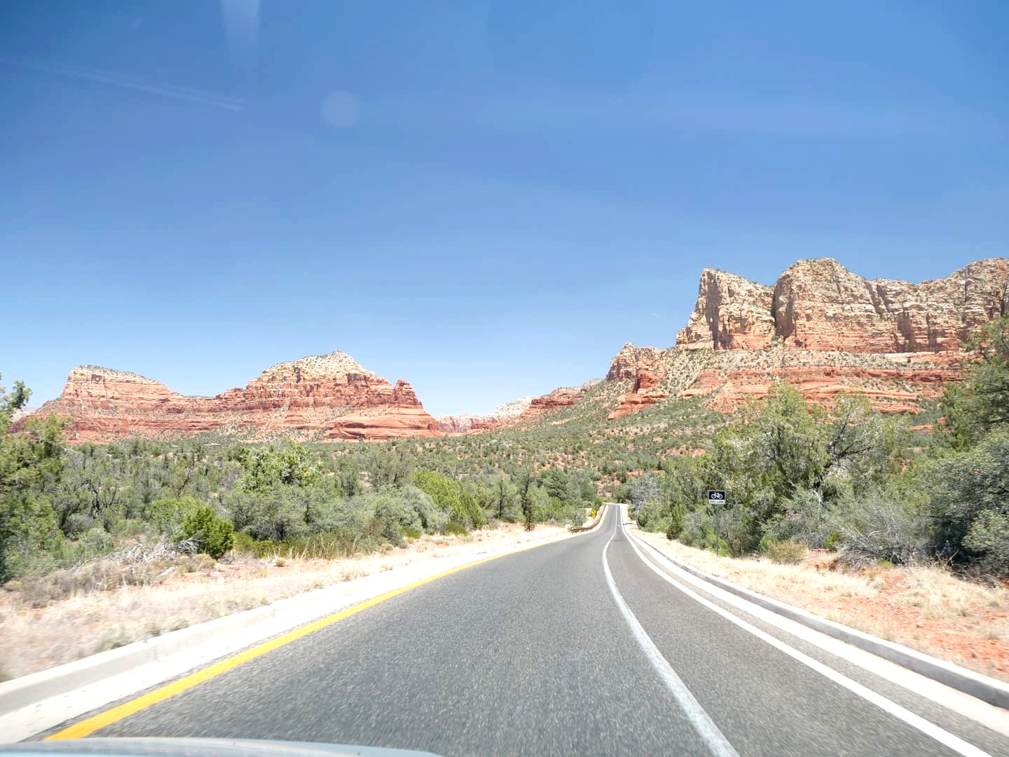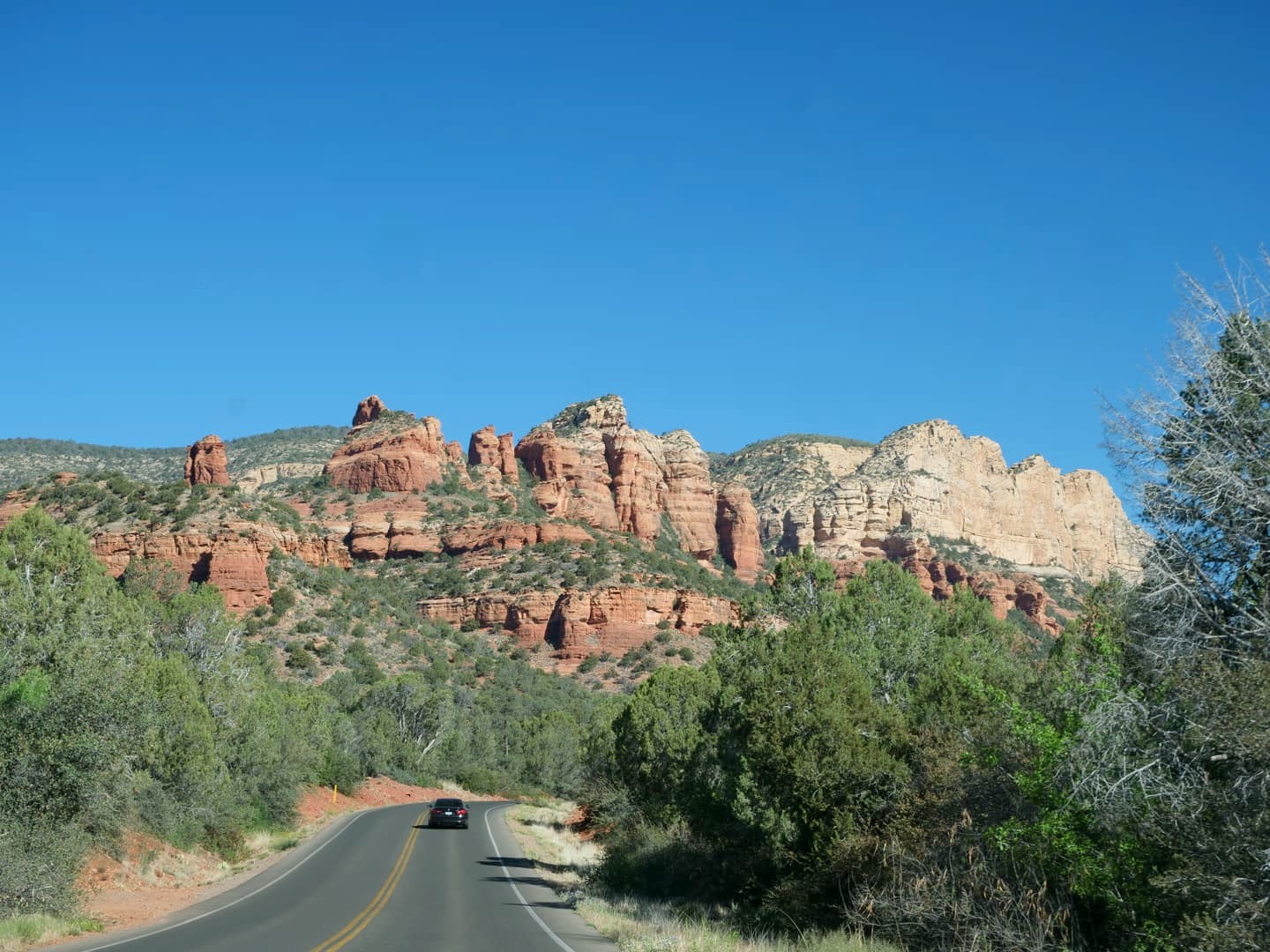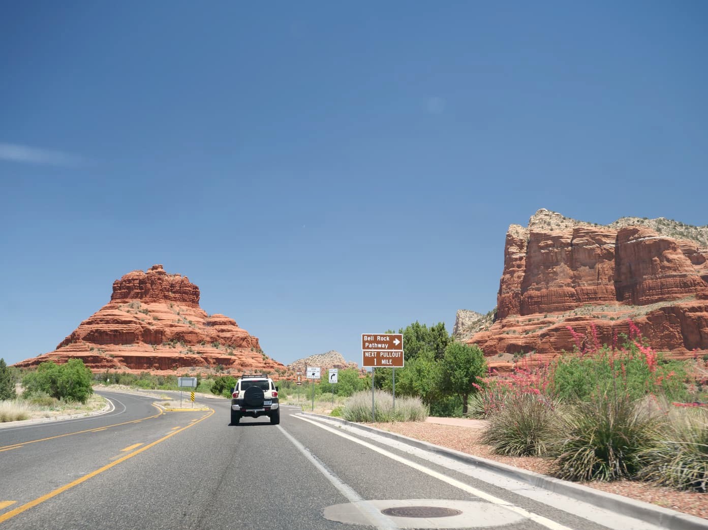 Pour arriver en beauté à Sedona depuis la I17, prenez la superbe Red Rock Scenic Byway, réputée comme l’une des plus belles routes des USA. Cette route scénique porte vraiment bien son nom, elle passe à côté de Bell Rock (voir plus bas) et d’autres formations rocheuses impressionnantes. Pour nous, ce fut une très belle introduction à Sedona.