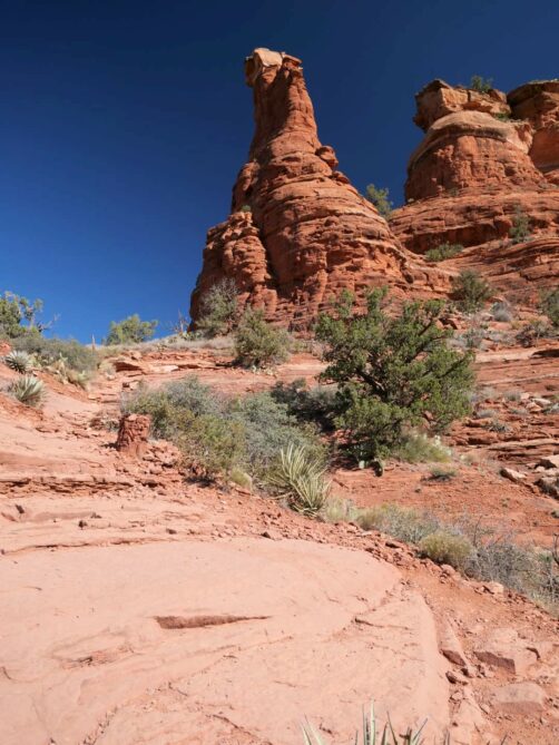 Le long de la Red Rock Scenic Byway se trouvent deux parkings (Bell Rock Trailhead et Bell Rock Pathway Trailhead – tous deux rapidement complets) qui permettent d’accéder au premier vortex de Sedona, le Bell Rock. On peut déjà voir la formation rocheuse qui contiendrait ce vortex depuis le parking, mais différentes possibilités de randonnées permettent de s’en rapprocher. La rando principale forme une boucle autour de Rock Bell et Courthouse Butte (environ 7 km). Vortex ou pas, cet endroit est l’un des plus populaires auprès des randonneurs à Sedona !