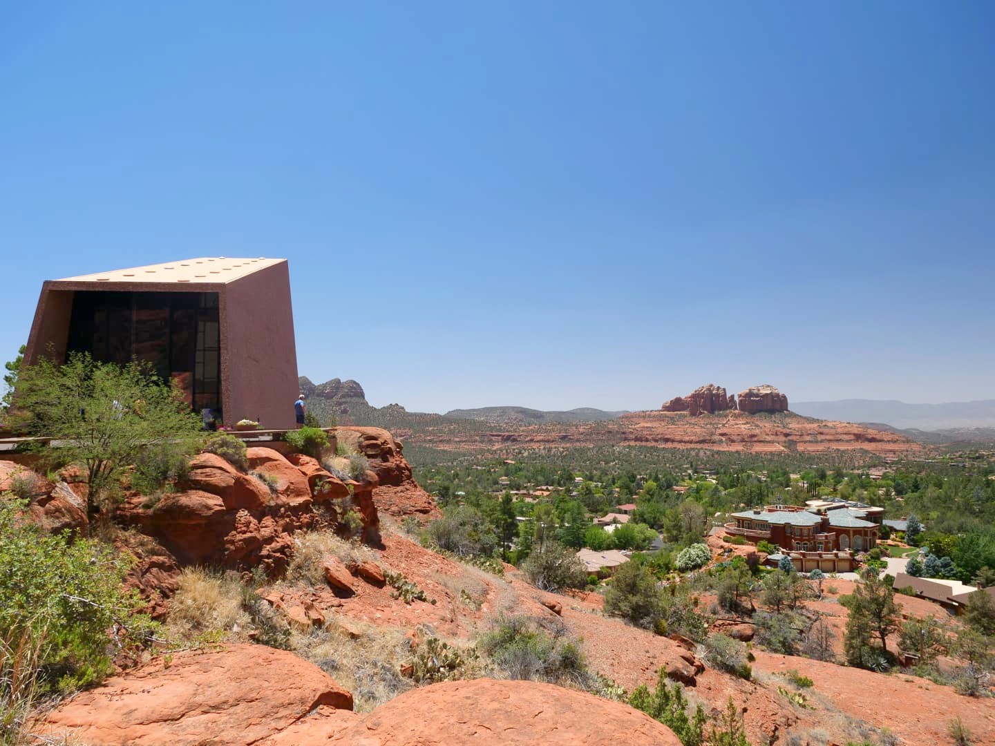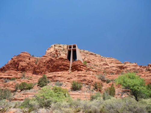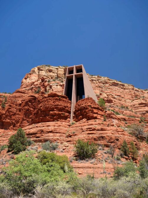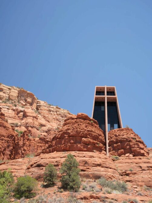 La Chapelle de la Sainte-Croix (Chapel of the Holy Cross) est l’un des endroits les plus connus de Sedona, et est donc considérée comme le cinquième vortex de la ville. Installée sur un promontoire rocheux, cette chapelle à l’architecture moderne (construite par une « disciple » de Frank Lloyd Wright dans les années 50) tranche avec le paysage qui l’entoure ! On y accède directement en voiture, ou en empruntant un petit sentier en contrebas. Depuis la chapelle, les vues panoramiques sur les environs sont superbes.