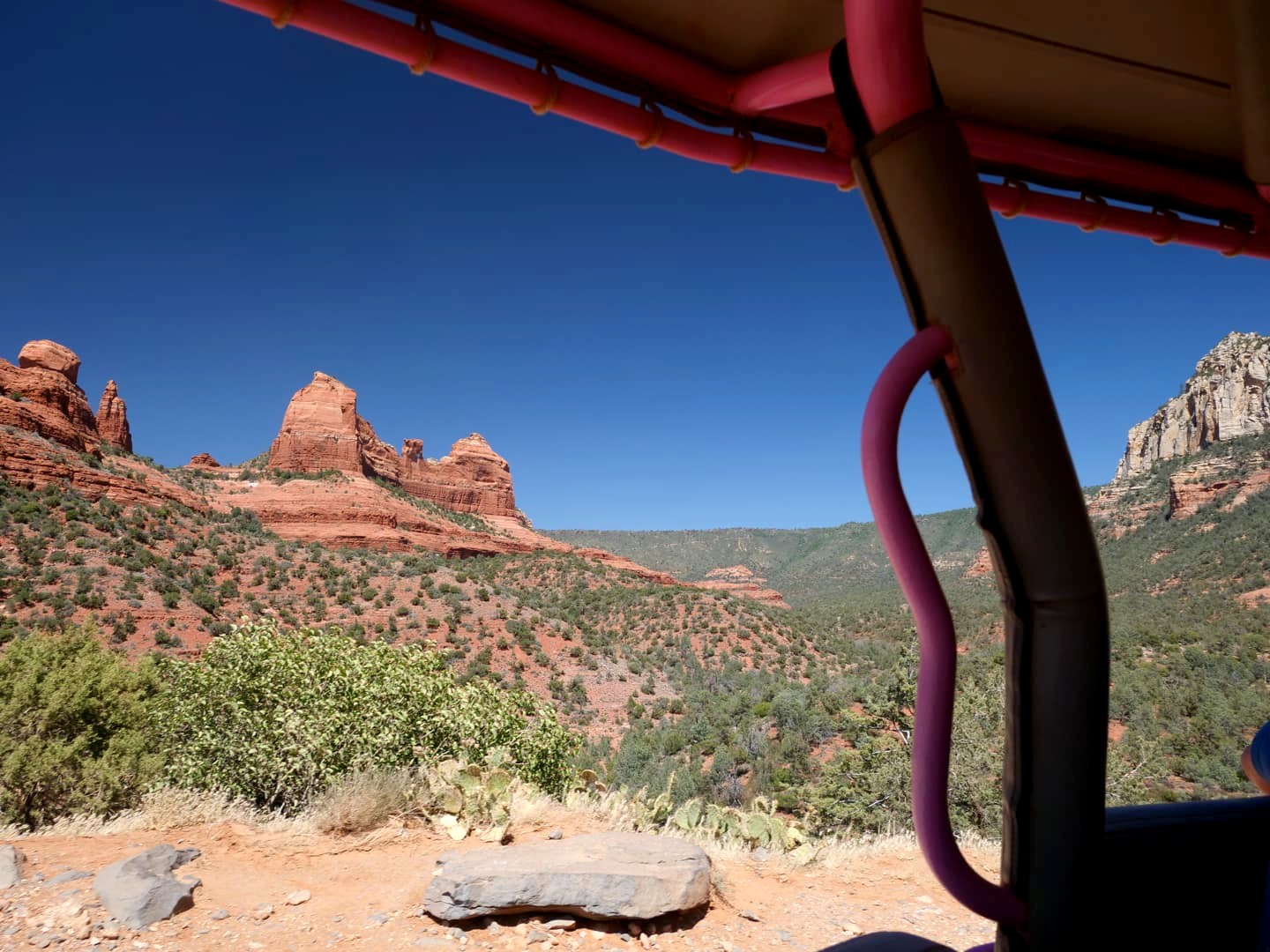 On a choisi d’opter pour un tour avec l’une des compagnies qui s’y trouve depuis le plus longtemps, mais qui est aussi l’une des plus chère : Pink Jeep Tours. Comme leur nom l’indique, ces tours sont reconnaissables de loin grâce à leur jeeps roses très photogéniques ! Oui, je me suis faite « avoir » par celles-ci. Le tour était très chouette, mais si le fait d’avoir une jeep rose ne justifie pas pour vous de payer plus cher, je pense honnêtement que les autres compagnies doivent être tout aussi bien.